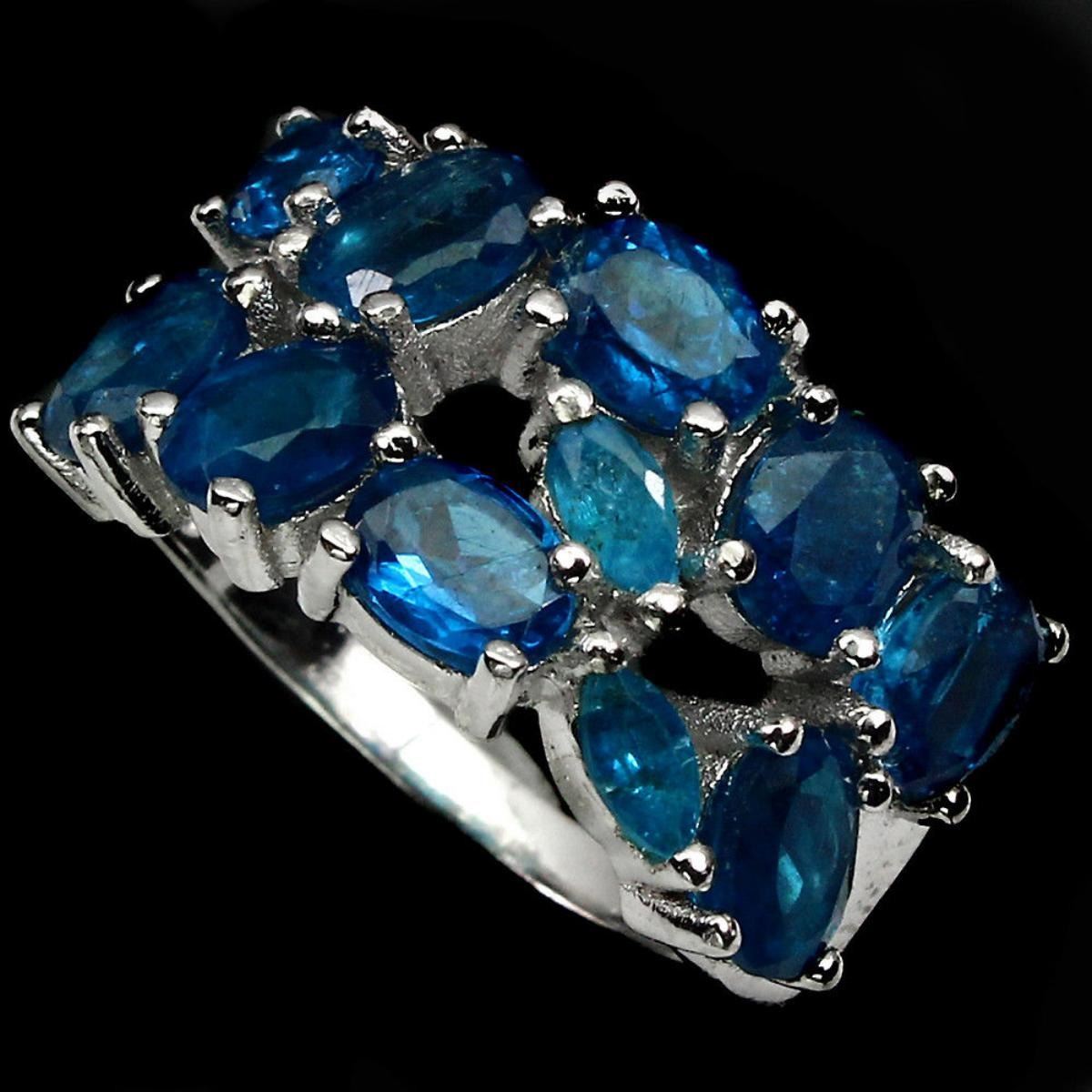 925 STERLING SILVER PLATE 14K WHITE GOLD RING SIZE- 8; MAIN STONE APATITE OTHER GEMS TOTAL WEIGHT 22.33 CT (TOTAL WEIGHT OF SILVER + STONE) DIMENSION * STONE 3.5 TO 5.0 X 4.0 MM. * RING SIZE 8.0 * FACE RING 20.0 X 11.0 MM. MAIN STONE SHAPE OVAL CUT MAIN STONE COLOR AAA PARAIBA BLUE CLARITY/GRADE IF TO VVS LUSTER ELEGANT TREATMENT HEATED ORIGIN AFRICA HARDNESS 5.0