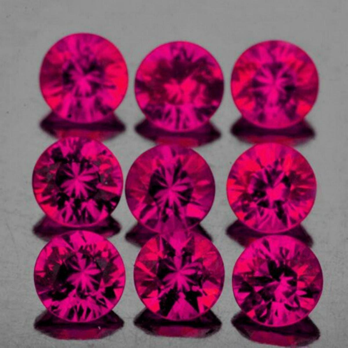 Natural Ruby; SHAPE : Round (Diamond Cut) SIZE ( L x W x D ) : 2.70 mm; QUANTITY : 9 pieces ( Perfectly Matched Set) COLOR : Pigeon Blood Red AAA Color; CLARITY : Flawless-VVS Best AAA Grade ; ORIGIN : Mogok, Burma ; HARDNESS : 9; LUSTER : AAA Fire!!!