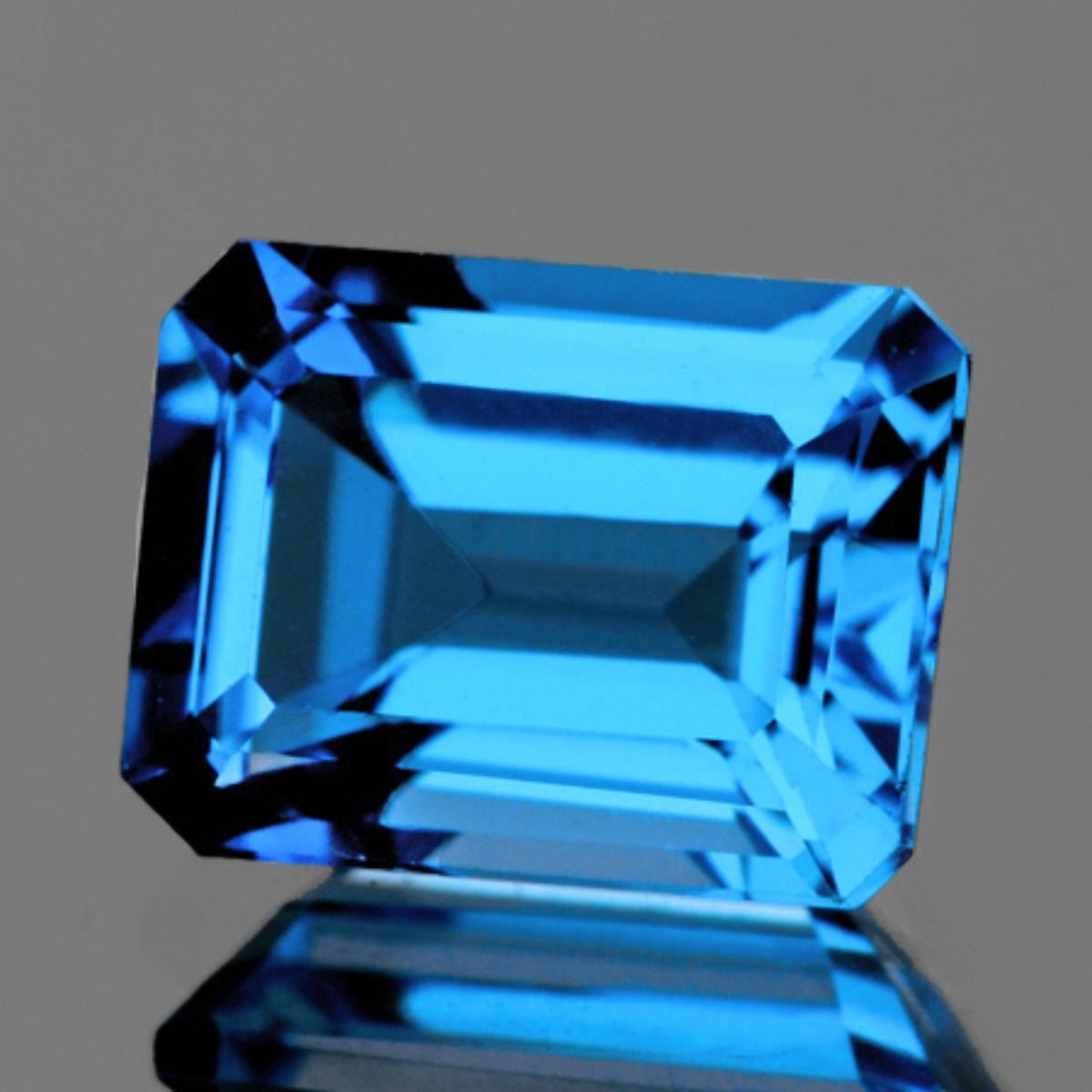 Natural Topaz WEIGHT : 14.83 cts; SHAPE : Rectangle; SIZE ( L x W x D ) : 15.86 x 12.05 x 7.94 mm QUANTITY : 1 piece; COLOR : AAA Swiss Blue; CLARITY : Flawless-VVS1 AAA Grade; ORIGIN : Brazil; HARDNESS : 8 LUSTER : Excellent!!! TREATMENT : Heated;