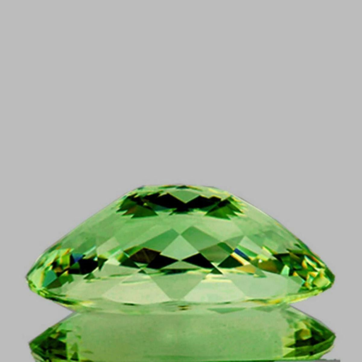 Natural Apatite WEIGHT : 9.68 cts SHAPE : Oval SIZE ( L x W x D ) : 17.74 x 9.73 x 7.77 mm QUANTITY : 1 pieces COLOR : Green AAA Color CLARITY : VVS AAA Grade ORIGIN : Madagascar HARDNESS : 5 LUSTER : Excellent!!! TREATMENT : 100% Natural Unheated