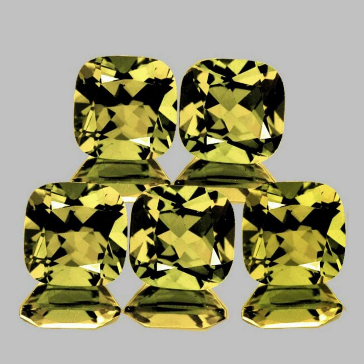Natural Yellow Beryl (Heliodor) SHAPE : Cushion (Princess Cut) SIZE ( L x W x D ) : 5.00 mm; QUANTITY : 5 pieces (Perfect Matching Set) COLOR : AAA Yellow; CLARITY : Flawless-VVS AAA Grade; ORIGIN : Brazil; HARDNESS : 7.5 to 8; LUSTER : AAA Fire!!!;