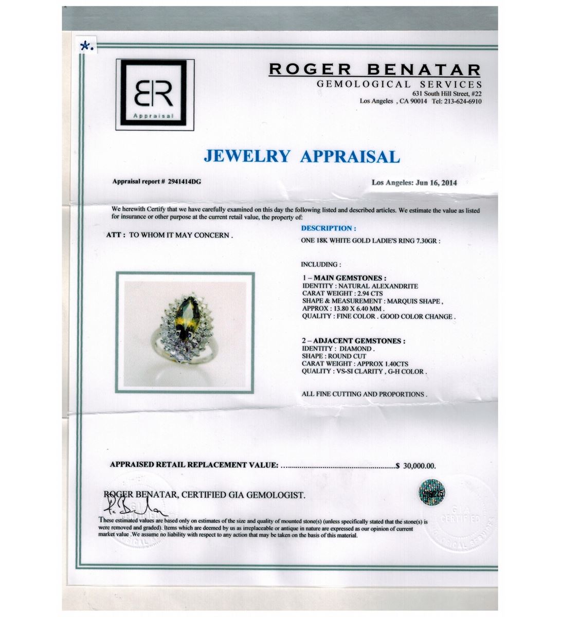 Natural Alexandrite 2.49ct / Diamond 1.40ct approx / 18K White Gold Ring 7.30gram