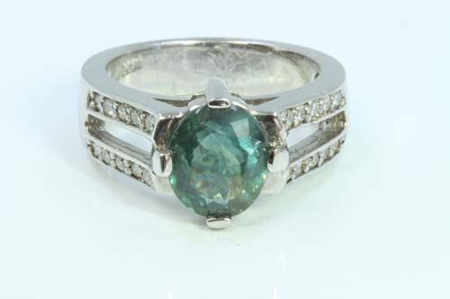 Natural Alexandrite 2.93ct / Diamond 0.28ct / 14K White Goldr Ring 6.72gram