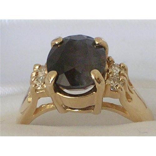 This is a striking oval faceted 3.83ct Natural Alexandrite ring in 14K gold and accented by two diamonds on each side. This color changing ring changes from a dark emerald green to a deep indigo purple. The cut appears to be ideal or deep. The clarity of the Alexandrite is SI2 while the diamonds are VS1. The four diamonds are .12ct in total. The setting has four prongs to support the stone, the setting is high so the light may enter the stone but contains a lower band to protect the stone. The ring is a size 6 ½ American (M ½ - British, Irish & Australian, 13- Japanese or 14 - Swiss)