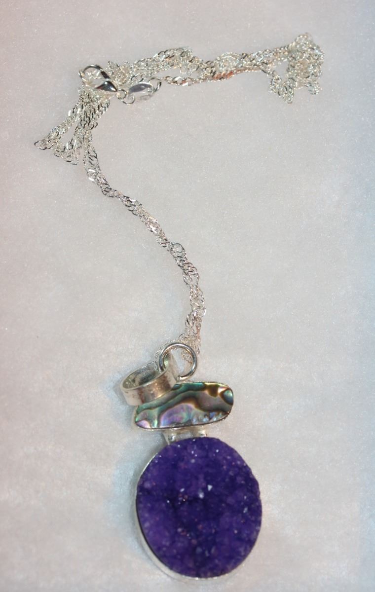 Natural Amethyst & Abalone Necklace...........with 925 sterling silver chain.....
