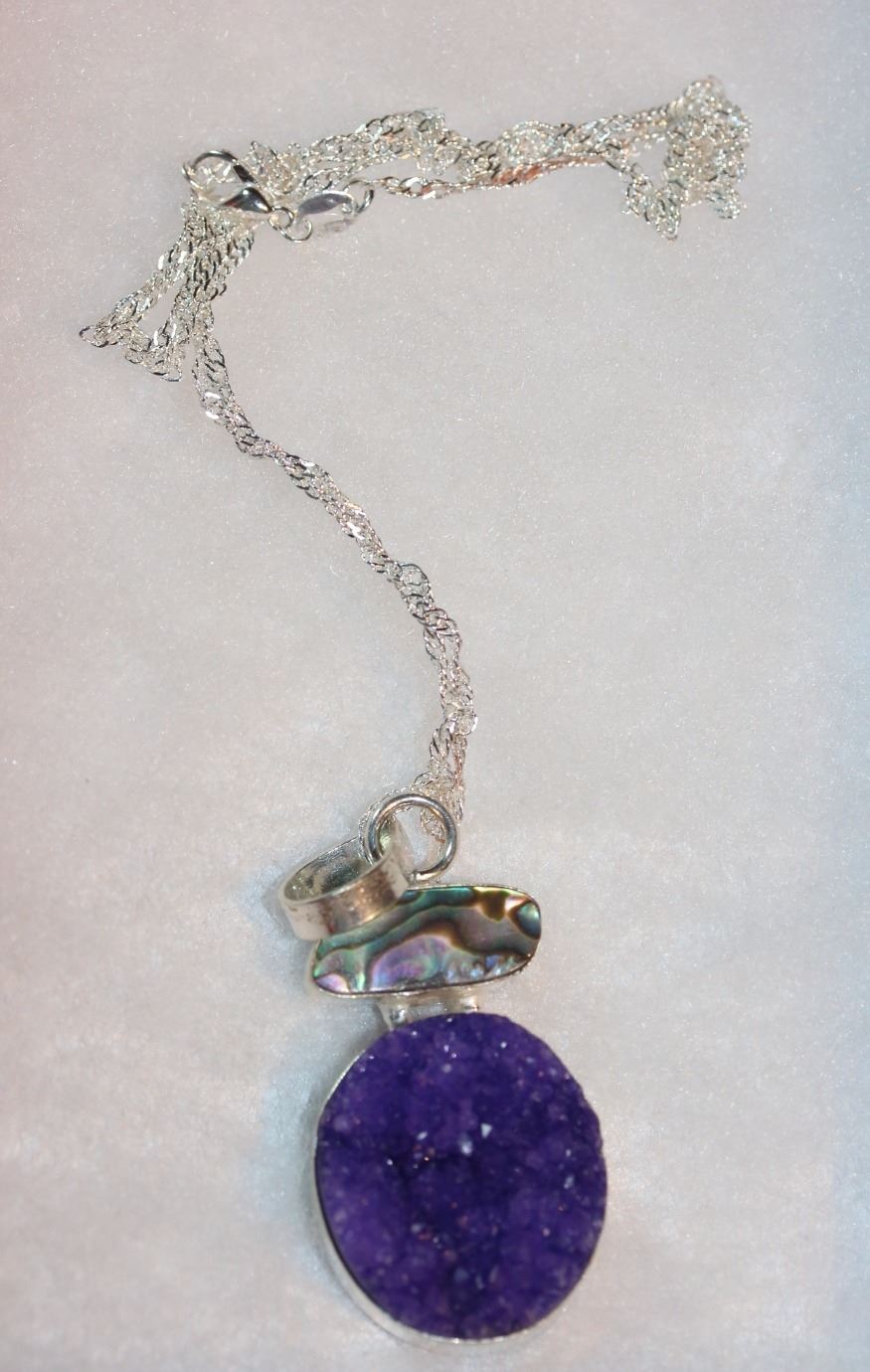 Natural Amethyst Abalone Necklace...........with 925 sterling silver chain.....