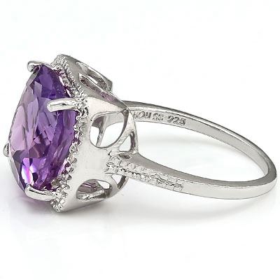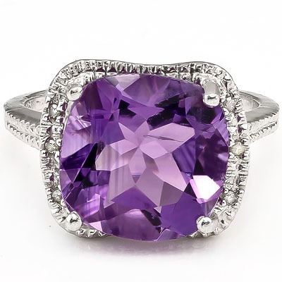 925 STERLING SILVER..........Metal Weight by Gram:1.91;Total Weight by Gram:2.74;Size:7; AMETHYST.....Quantity:1;Cut:CUSHION CUT;Carat:4.120;Clarity:VERY GOOD;Color:FLORAL LAVENDER;GENUINE DIAMOND.....Quantity:2;Cut:ROUND CUT;Carat:0.010;Clarity:SI1-I2;Color:G-I