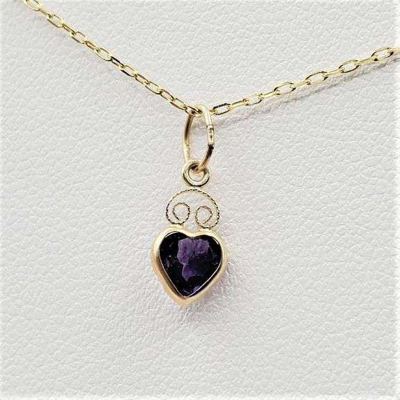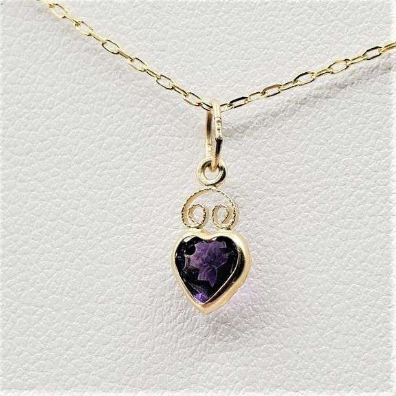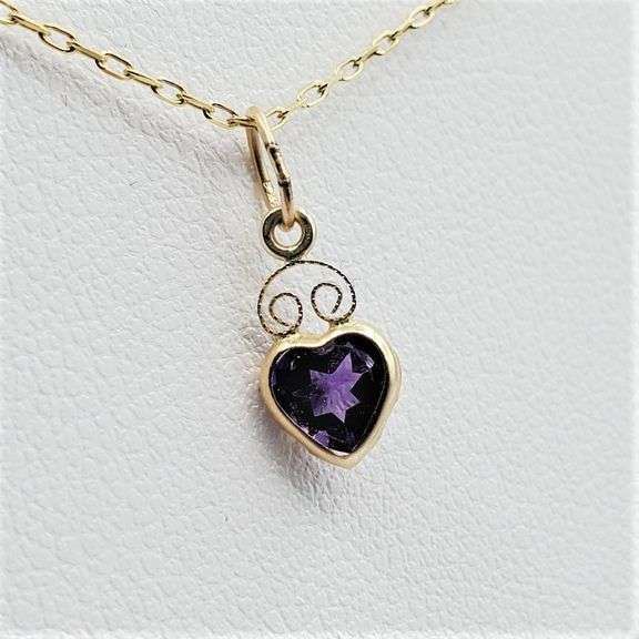 14kt. Bellow gold 5mm natural amethyst heart pendant with sterling silver chain, 0.45 cts. With appraisal $745.00.