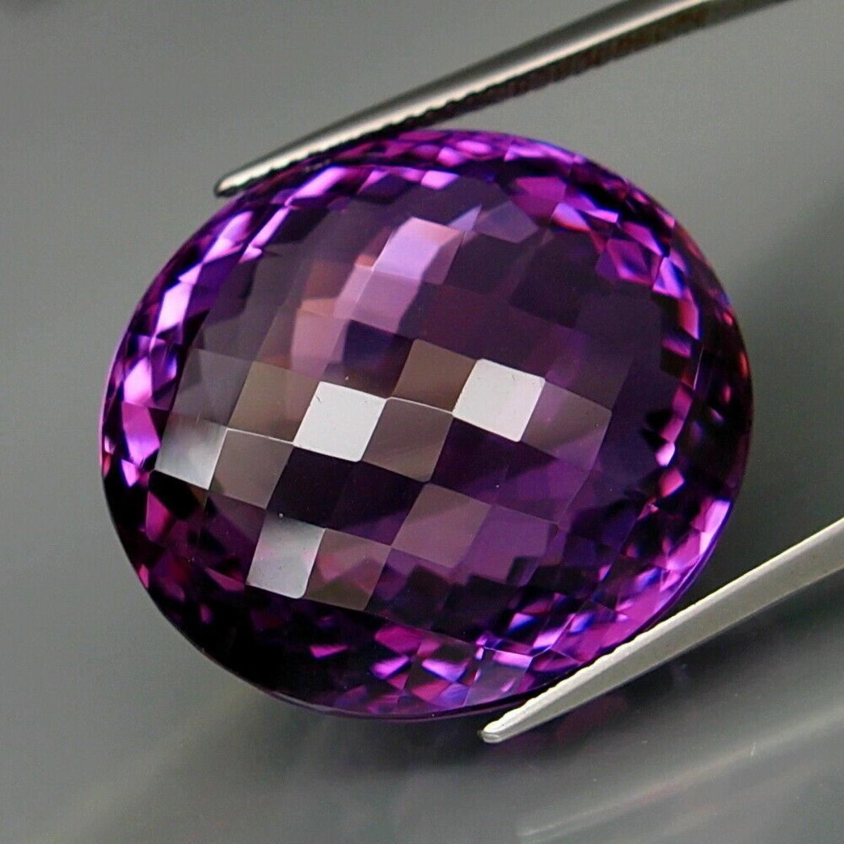Amethyst SHAPE Oval Checkerboard; WEIGHT 56.78 Ct.SIZE 24.8 X 22.4 X 16 mm; QUANTITY 1 Piece COLOR Purple; LUSTER Superior ORIGIN Bazil; TREATMENT None; HARDNESS 7