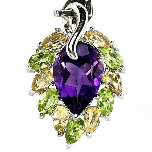 MULTI COLOR AMETHYST PERIDOT CITRINE 925 SILVER PENDANT 14K WHITE GOLD COATING......STONE SHAPE-PEAR PORTUGUESE CUT;STONE DIMENSION13 X 9 MM.;MAIN STONE WEIGHT-4.5 CARAT;COLOR-PURPLE;CLARITY- VVS/VS;TREATMENT-NATURAL UNHEATED;ORIGIN OF STONEBOLIVIA..Pakistan;HARDNESS-7;OTHERFACE OF PENDANT 26 X 18 MM.; PERIDOT & CITRINE 5 X 3 MM. ;TOTAL 4 G.