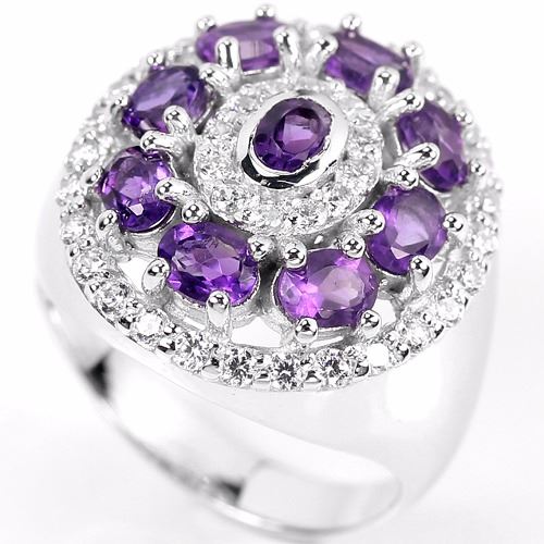 NATURAL AAA PURPLE AMETHYST & WHITE CZ 925 SILVER RING 14K WHITE GOLD COATING... size 6 (can be resized); STONE SHAPEOVAL PORTUGESE CUTSTONE DIMENSION4 X 3 MM.MAIN STONE WEIGHT1.62 CARATCOLORAAA PURPLECLARITYIF - VVSLUSTERENCHANTINGTREATMENTUNHEATEDORIGIN OF STONEBOLIVIAHARDNESS7.0OTHERFACE OF RING 19 X 17 MM. WHITE CUBIC ZIRCONIA 1.5 MM. TOTAL 6.60 G.