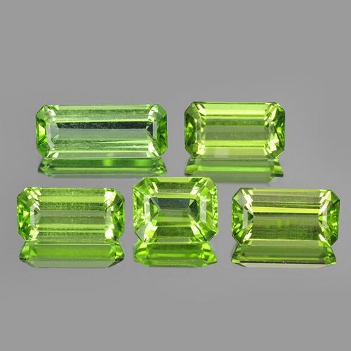 Natural Peridot..........Quantity:5 PC;Shape:Octagon;Weight:8.30 Cts;Color:Apple greenClarity:VS ( + / - One Grade )Origin:PakistanTreatment:Natural