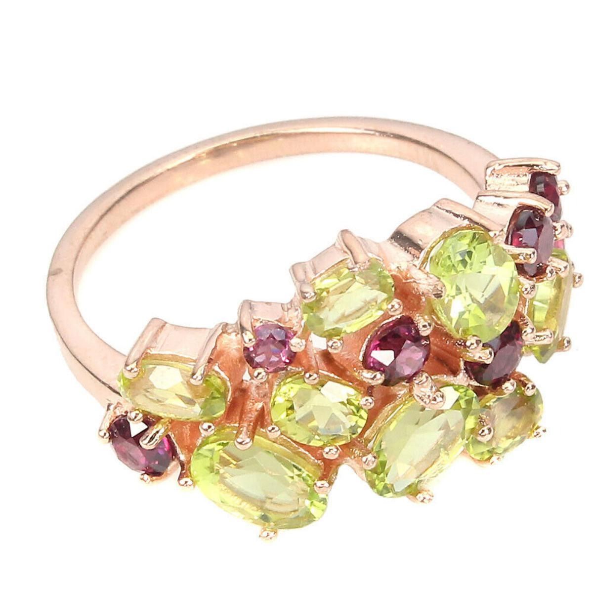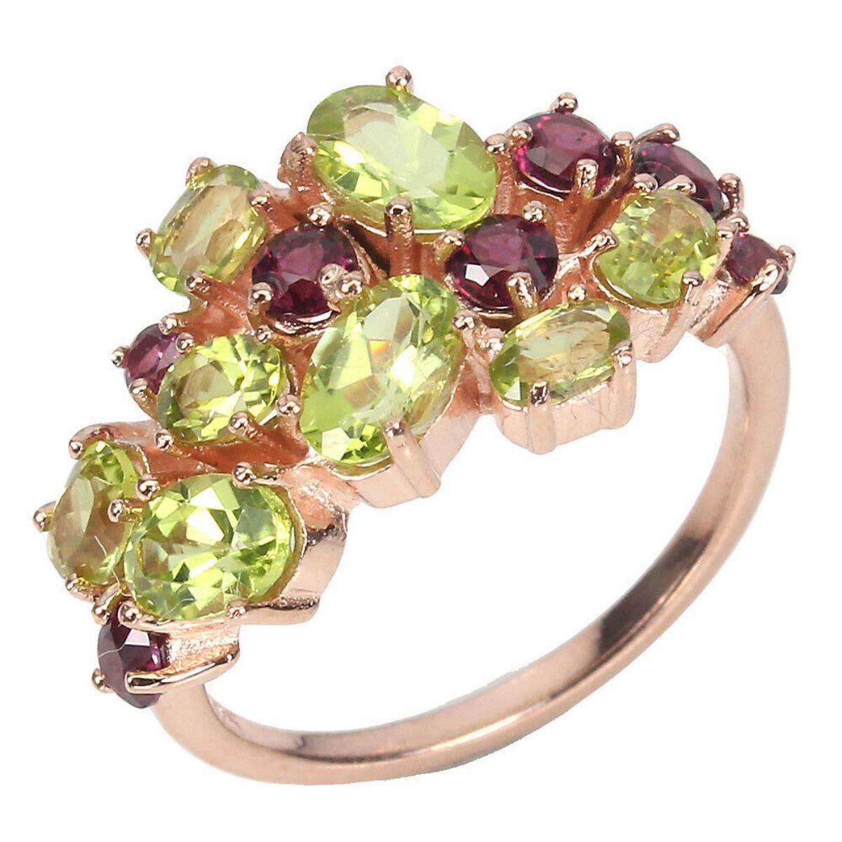 925 STERLING SILVER;PLATE14K ROSE GOLD;RING SIZE/Resizeable-7;MAIN STONE-PERIDOTOTHER GEMS-RHODOLITE GARNETTOTAL WEIGHT-4.27 GRAM (TOTAL WEIGHT OF SILVER + STONE)DIMENSION-* STONE 2.5 TO 6.0 X 4.0 MM.* RING SIZE- 7.0* FACE RING- 23.0 X 14.0 MM.MAIN STONE SHAPE-OVAL CUTMAIN STONE COLOR-TOP RICH GREENCLARITY/GRADE-IF TO VVSTREATMENT-UNHEATEDORIGIN-PAKISTANHARDNESS-6.5 - 7.0