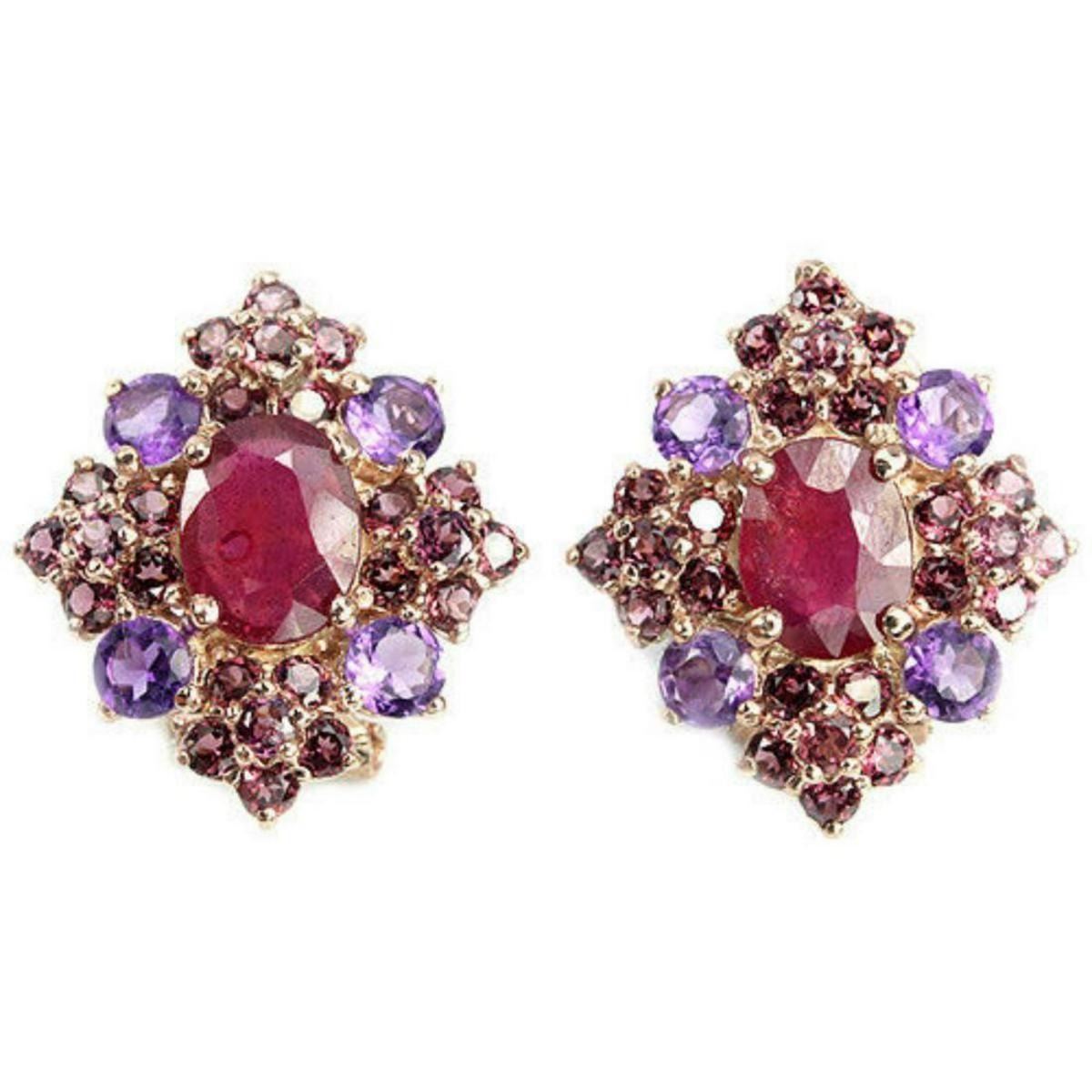 BLOOD RED RUBY RHODOLITE AMETHYST 925 SILVER EARRING 14K PINK GOLD COATING; STONE SHAPEOVAL & ROUNDSTONE DIMENSION9 X 7 MM. , 4 MM. , 2.5 MM. & 2.2 MM.ITEM WEIGHT7.5 GRAMCOLORMULTI COLORCLARITYTRANLUCENT & IF VVSLUSTERDAZZLINGTREATMENTUNHEATED & HEATEDORIGIN OF STONEAFRICA & BRAZILHARDNESS7 - 9OTHERFACE OF EARRING 22 X 20 MM.