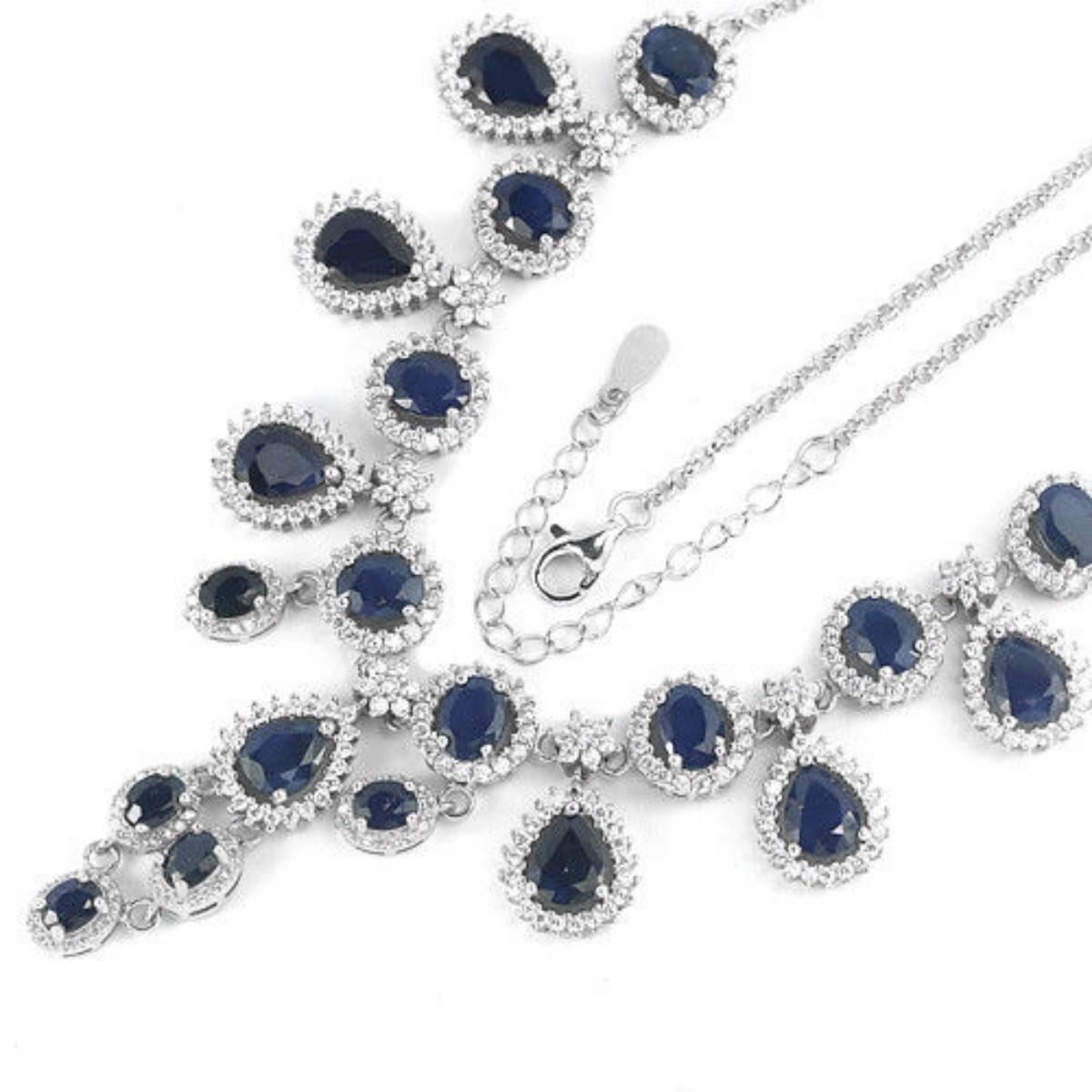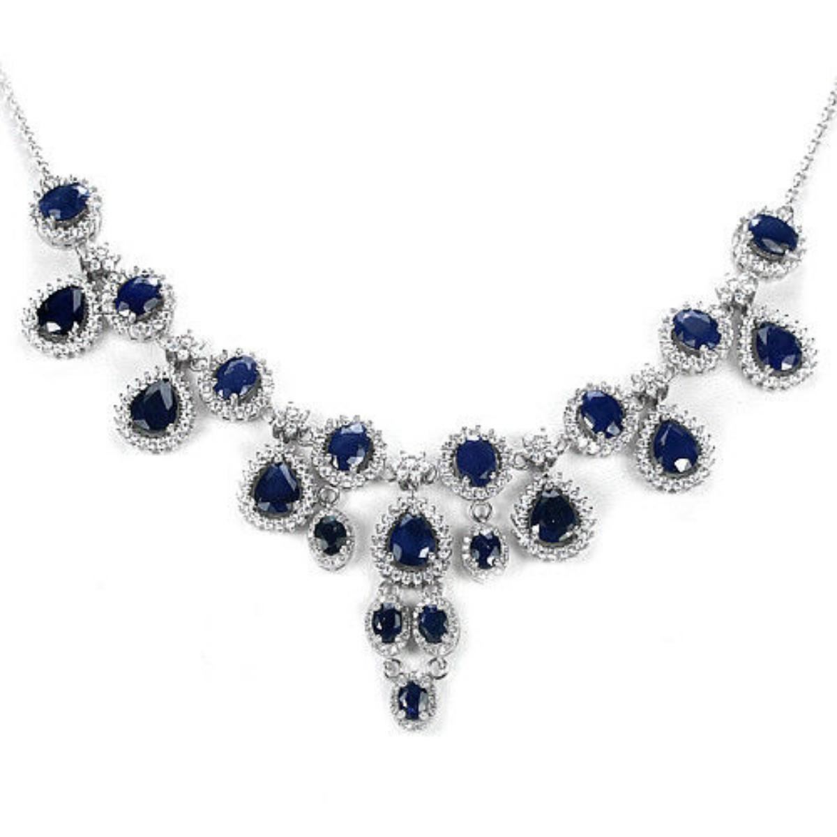 GENUINE AAA BLUE SAPPHIRE & WHITE CZ 925 SILVER NECKLACE 14K WHITE GOLD COATING; LENGTH OF ITEM (Inch.)20.25 ( RESIZE : NO )ITEM QUANTITY1STONE SHAPEPEAR & ROUND FACET CUTSTONE DIMENSION7 X 5 MM. , 6 X 4 MM. , 5 X 4 MM.ITEM WEIGHT27.72 GRAM (135 cts)COLORBLUECLARITYTRANSLUCENTLUSTERALLURINGTREATMENTHEATEDHARDNESS9.0WHITE CUBIC ZIRCONIA 1.5 MM. , 1 MM.
