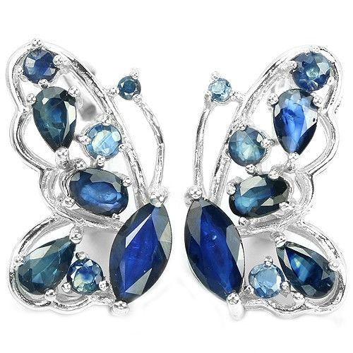 REAL GENUINE BLUE SAPPHIRE 925 SILVER BUTTERFLY EARRING 14K WHITE GOLD COATING; STONE SHAPE MIXED SHAPE STONE DIMENSION 8 X 4 MM. , 5 X 3 MM. , 2.7 MM. , 2.5 MM. 1.7 MM. ITEM WEIGHT -5.6 GRAM; COLOR -BLUE; LUSTER -GRACEFUL; TREATMENT -HEATED; HARDNESS -9.0; FACE OF EARRING 19 X 22 MM.;