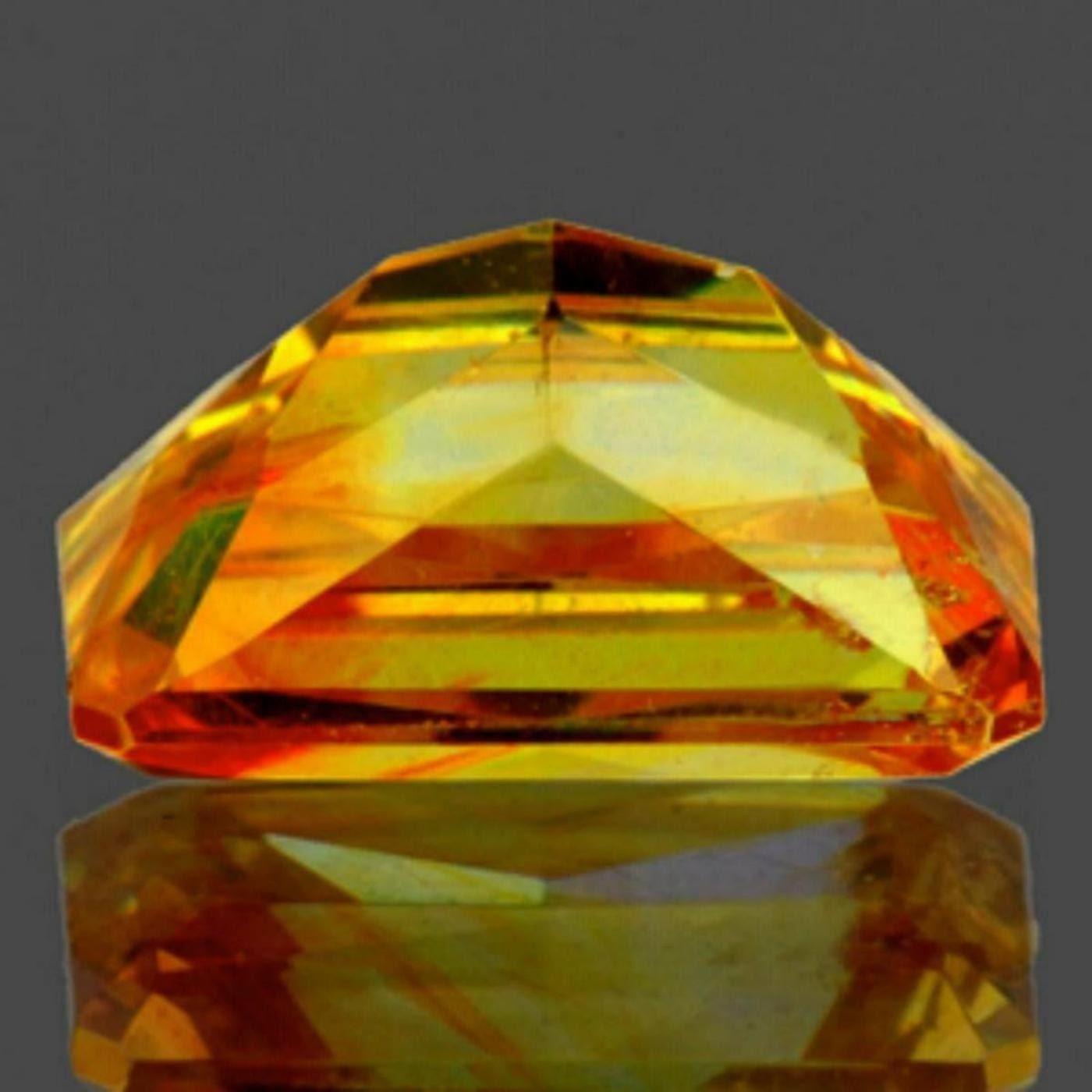 Natural Sphalerite WEIGHT : 4.92 cts SHAPE : Rectangle (Princess Cut) SIZE ( L x W x D ) : 10.68 x 7.86 x 5.57 mm QUANTITY : 1 piece COLOR : Mix Orange Yellow CLARITY : VVS-VS ORIGIN : Santander,Spain HARDNESS : 5 LUSTER : Brilliantly Sparkling TREATMENT : 100% Natural Unheated