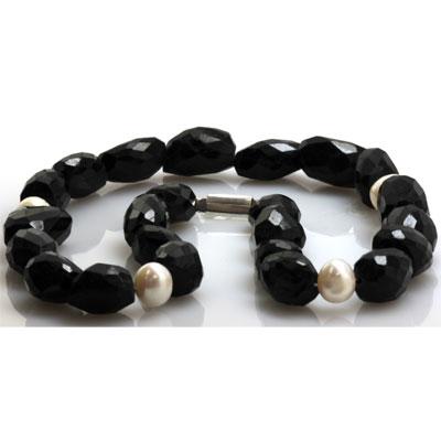 Natural Big Black Spinal and Pearl Beads Necklace with clasp ; MSRP: $119