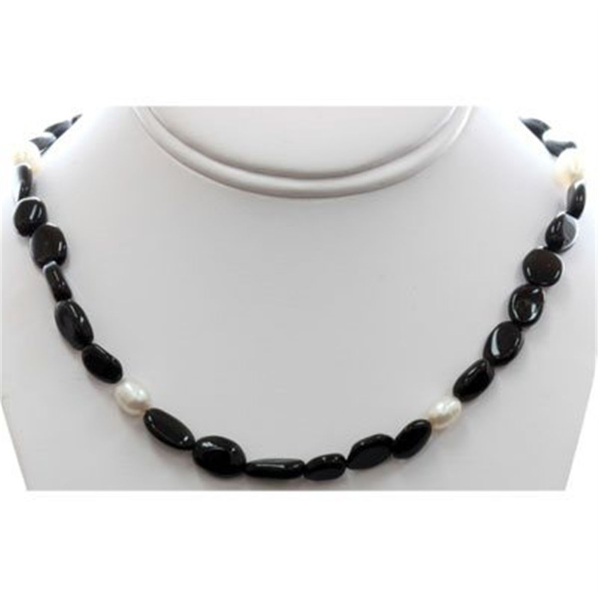 Natural Black Tourmaline and Pearl Beads Necklace with clasp ; MSRP: $119