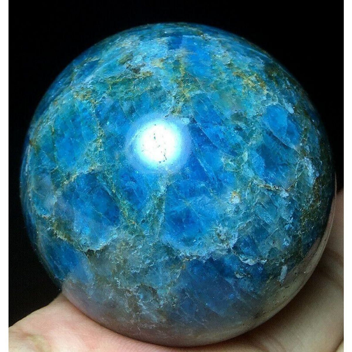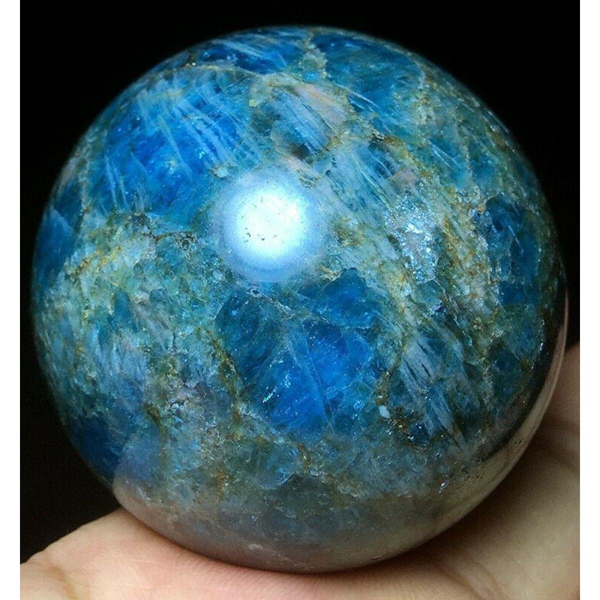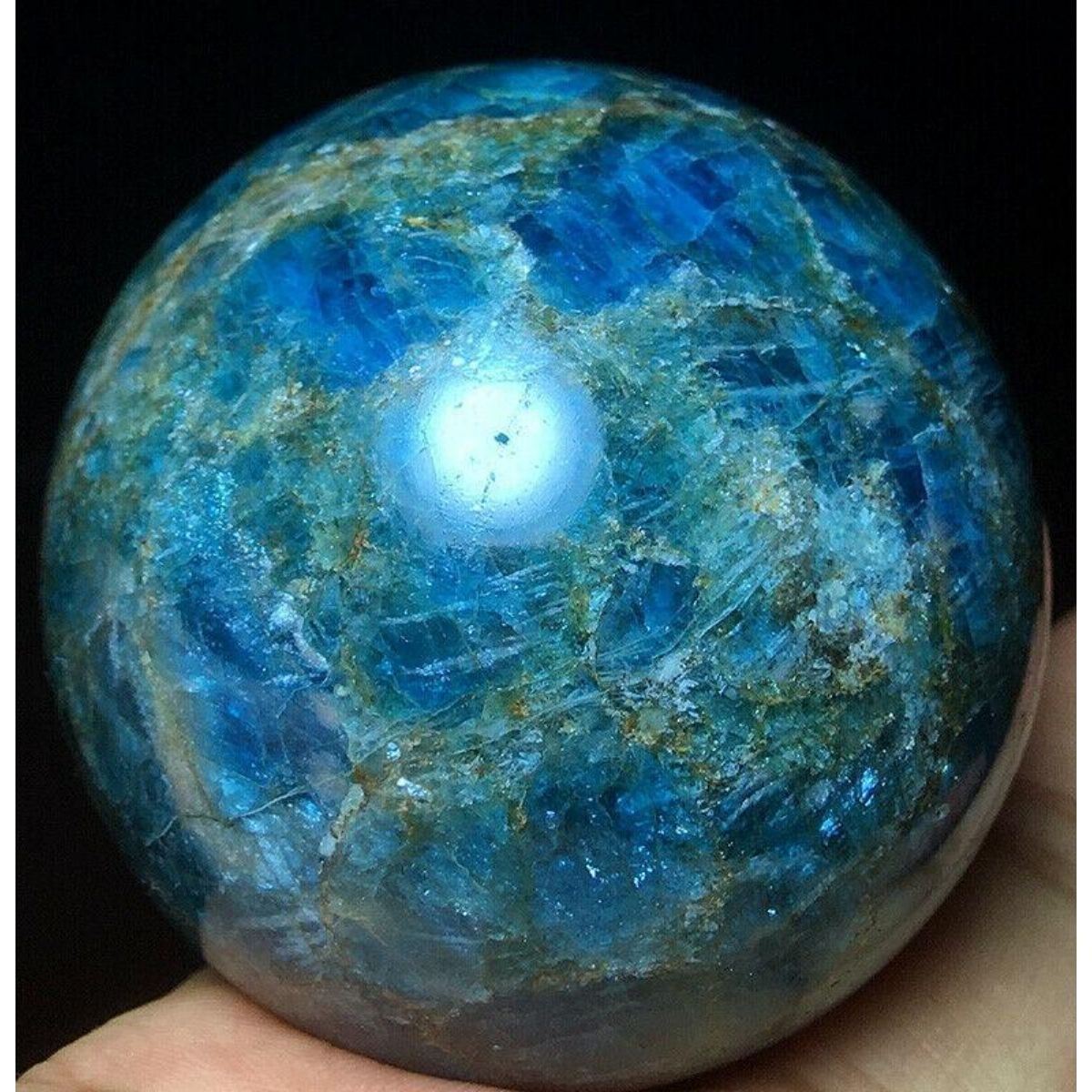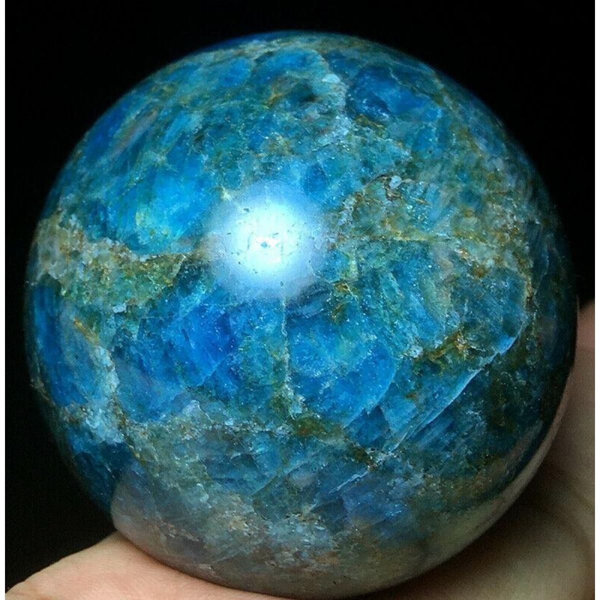 Natural Blue Apatite quartz crystal gemstone sphere. 57mm ( 2 1/4" ) D. 248 grams weight.