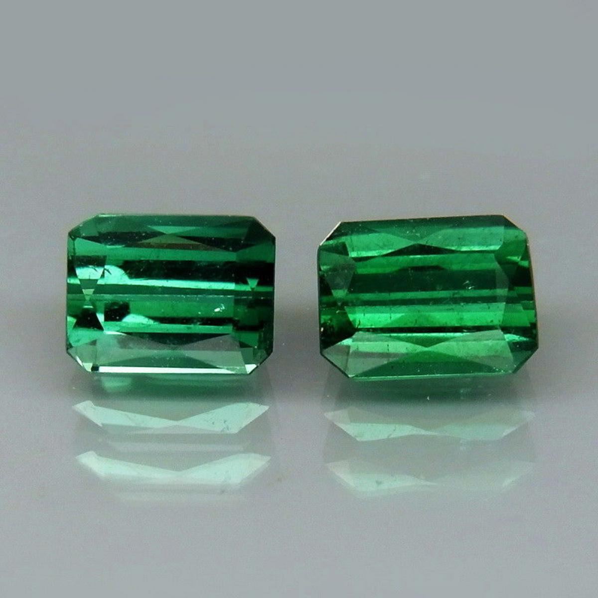 Tourmaline SHAPE Emerald Cut .SIZE 5.5 X 4 mm QUANTITY 2 Pieces COLOR Blue/green; CLARITY SI LUSTER Superior ORIGIN Mozambique TREATMENT None HARDNESS 7-7.5