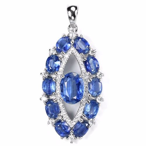 NATURAL AAA BLUE KYANITE WHITE CZ 925 SILVER PENDANT 14K WHITE GOLD COATING; STONE SHAPEOVALSTONE DIMENSION9 X 7 MM. , 6 X 4 MM.ITEM WEIGHT6.3 GRAMCOLORBLUECLARITYTRANSLUCENTLUSTERMAGNIFICENTTREATMENTNATURAL UNHEATEDORIGIN OF STONEAFRICAHARDNESS7OTHERFACE OF PENDANT 40 X 18 MM. WHITE CUBIC ZIRCONIA 1.7 MM. , 1 MM.