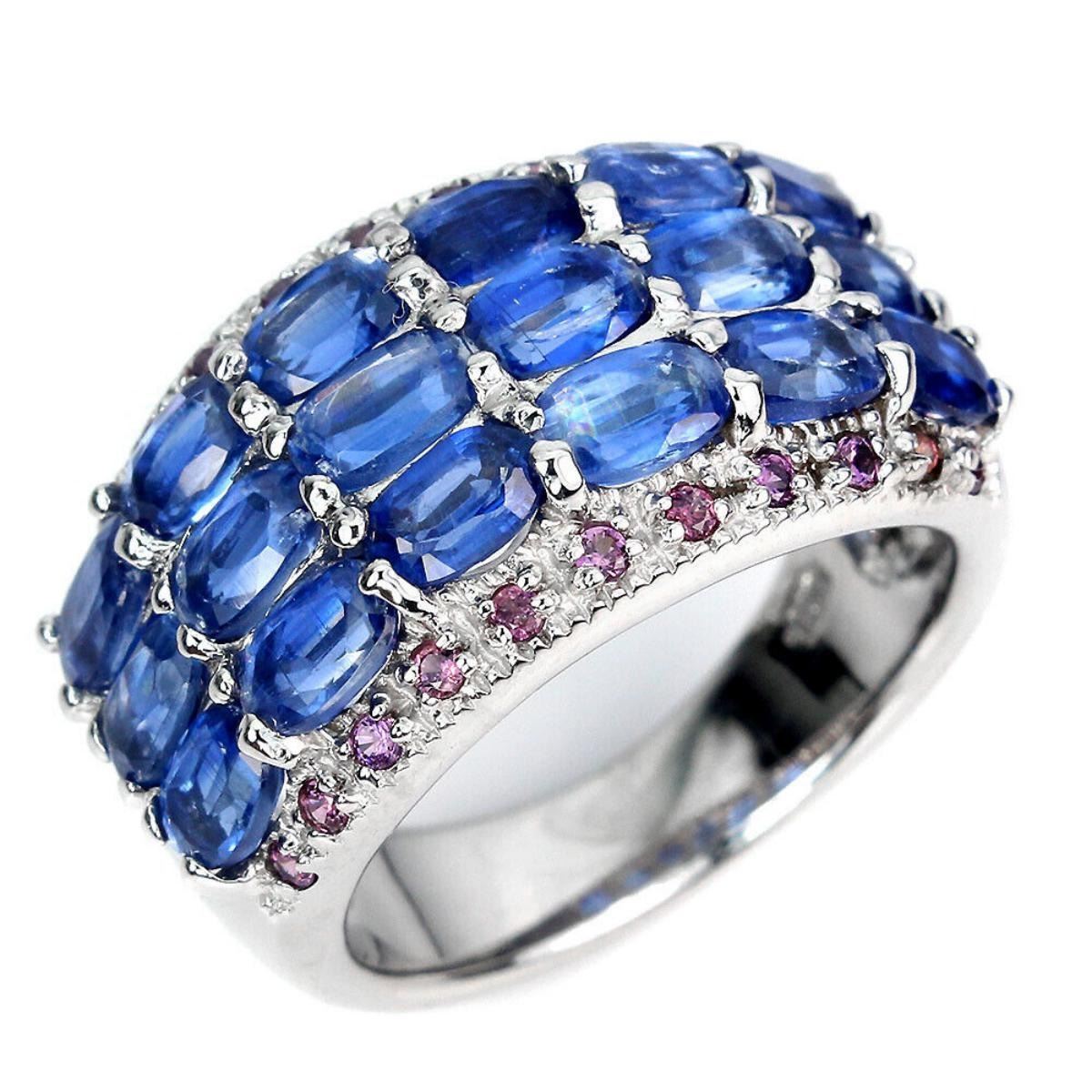925 STERLING SILVER;PLATE-14K WHITE GOLD;RING SIZE/Resizeable-8;MAIN STONE-KYANITE;OTHER GEMS-RHODOLITE GARNET;TOTAL WEIGHT-9.36 GRAM (TOTAL WEIGHT OF SILVER + STONE)DIMENSION-* STONE 1.0 TO 5.0 X 3.0 MM.;* RING SIZ-E 8.0;* FACE RING 25.0 X 14.0 MM.;MAIN STONE SHAPE-OVAL CUT;MAIN STONE COLOR- BLUE;CLARITY/GRADE-IF TO VVS;TREATMENT-UNHEATED;ORIGIN-NEPAL;HARDNESS-5.0 - 7.0;
