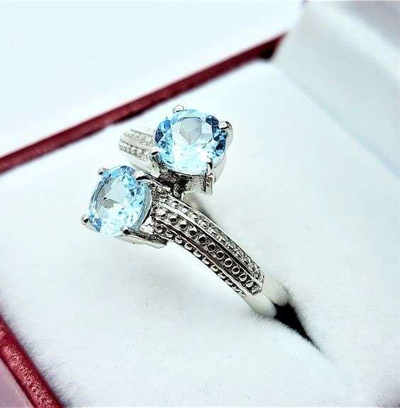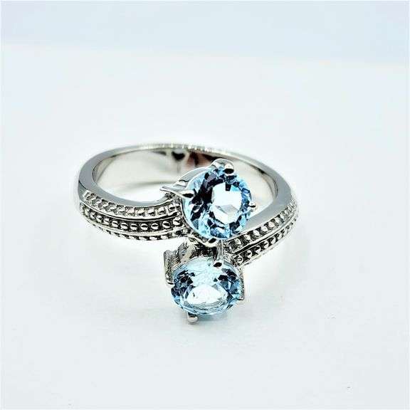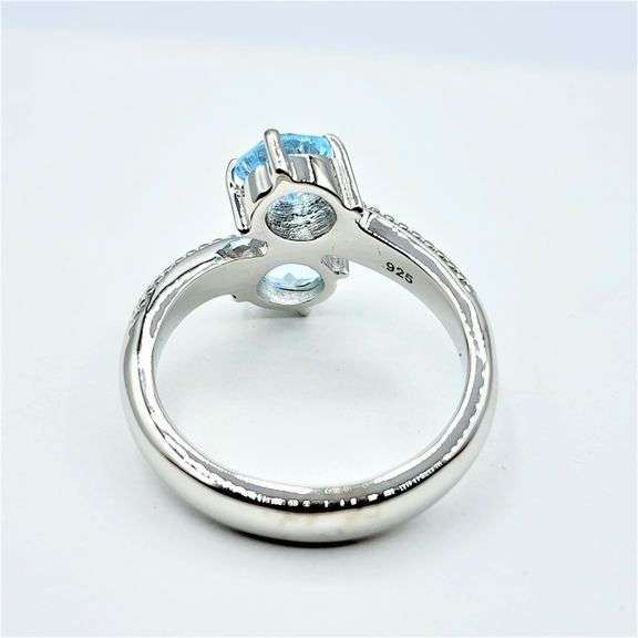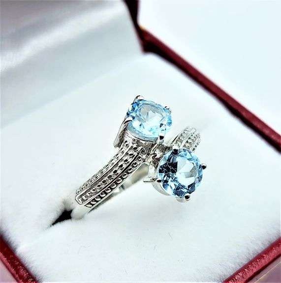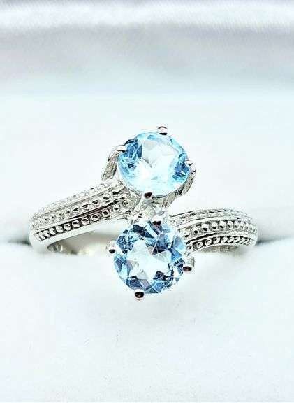 Sterling silver 6.15mm natural blue topaz ring, size 7. With appraisal $400.00