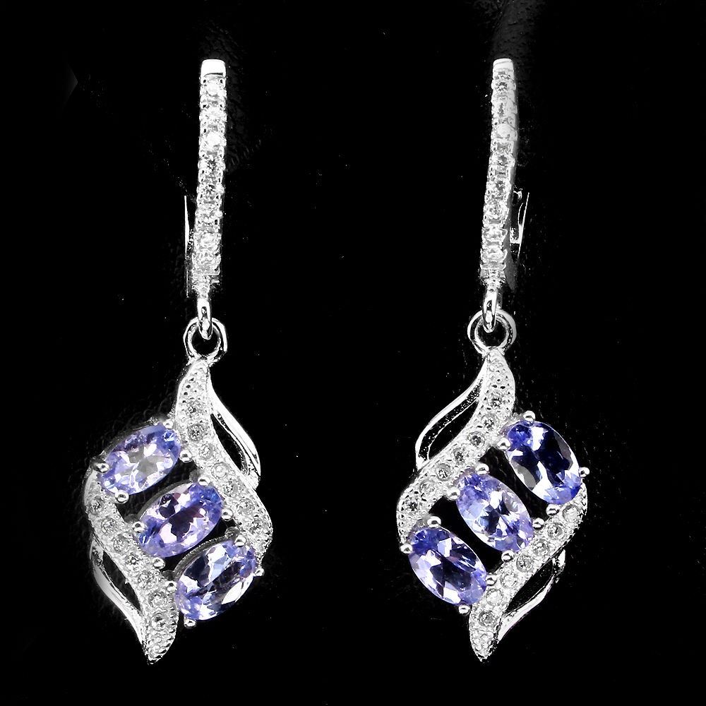 925 STERLING SILVER;PLATE-14K WHITE GOLD;MAIN STONE-TANZANITE;OTHER GEMS-CUBIC ZIRCONIA;TOTAL WEIGHT-24.46 CT (TOTAL WEIGHT OF SILVER + STONE)DIMENSION* STONE 5.0 X 3.0 MM. * CZ 1.0 MM. * FACE EARRINGS 33.0 X 11.0 MM.;MAIN STONE SHAPE-OVAL CUT;MAIN STONE COLOR-TOP RICH BLUE VIOLET;CLARITY/GRADE-IF TO VVS;TREATMENT-UNHEATED;ORIGINTANZANIA - AFRICA;HARDNESS-7.0 - 7.5