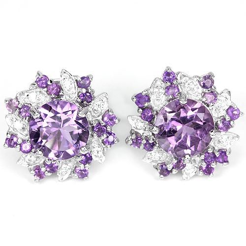 NATURAL PURPLE AMETHYST WHITE CZ 925 SILVER EARRING 14K WHITE GOLD COATING; STONE SHAPEROUND PORTUGUESE CUTSTONE DIMENSION8 MM. 1.7 MM.ITEM WEIGHT5.8 GRAMCOLORAAA PURPLECLARITYIF - VVSLUSTERALLURINGTREATMENTUNHEATEDORIGIN OF STONEBRAZILHARDNESS7.0OTHERFACE OF RING 15 X 15 MM. WHITE CUBIC ZIRCONIA 1.2 MM.