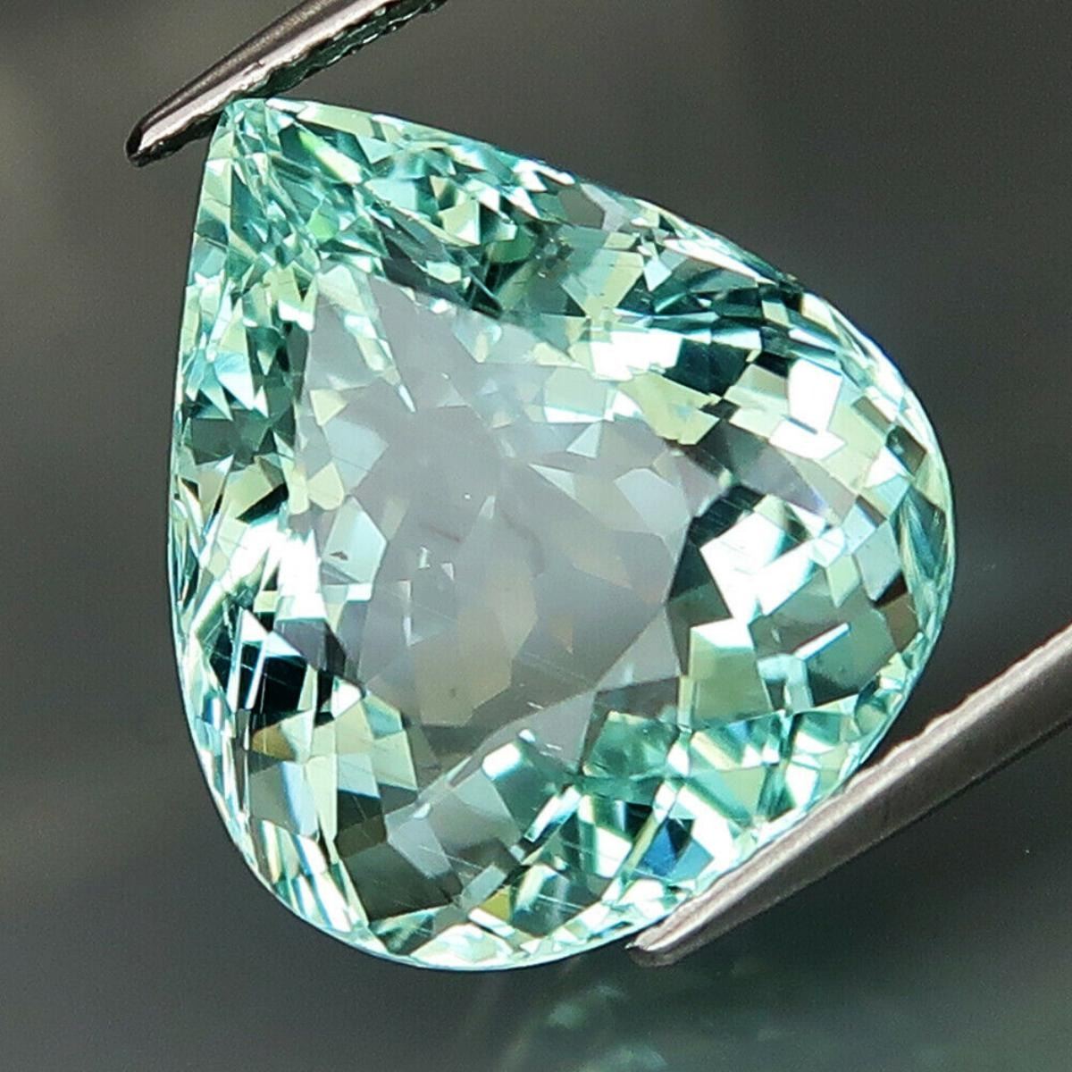 Aquama; rine.... .SHAPE Pear Shape WEIGHT 12.03 Ct. SIZE 16.9 X 14.7 X 9.2 mm ; QUANTITY 1 Piece COLOR Sky Blue; CLARITY VS; LUSTER Superior ORIGIN Brazil TREATMENT None ; HARDNESS 7.5-8