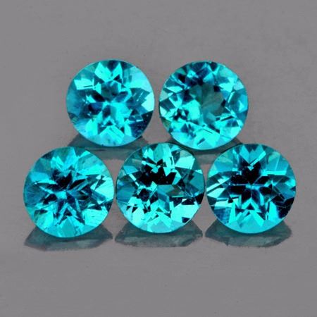 Natural Apatite....... WEIGHT : 1.57 cts; SHAPE : Round; SIZE ( L x W x D ) : 4.20 mm; QUANTITY : 5 pieces(Perfectly Match Set) COLOR : AAA Paraiba Blue; CLARITY : IF-VVS1; ORIGIN : Brazil; HARDNESS : 5; LUSTER : Excellent!!! TREATMENT : 100% Natural Unheated