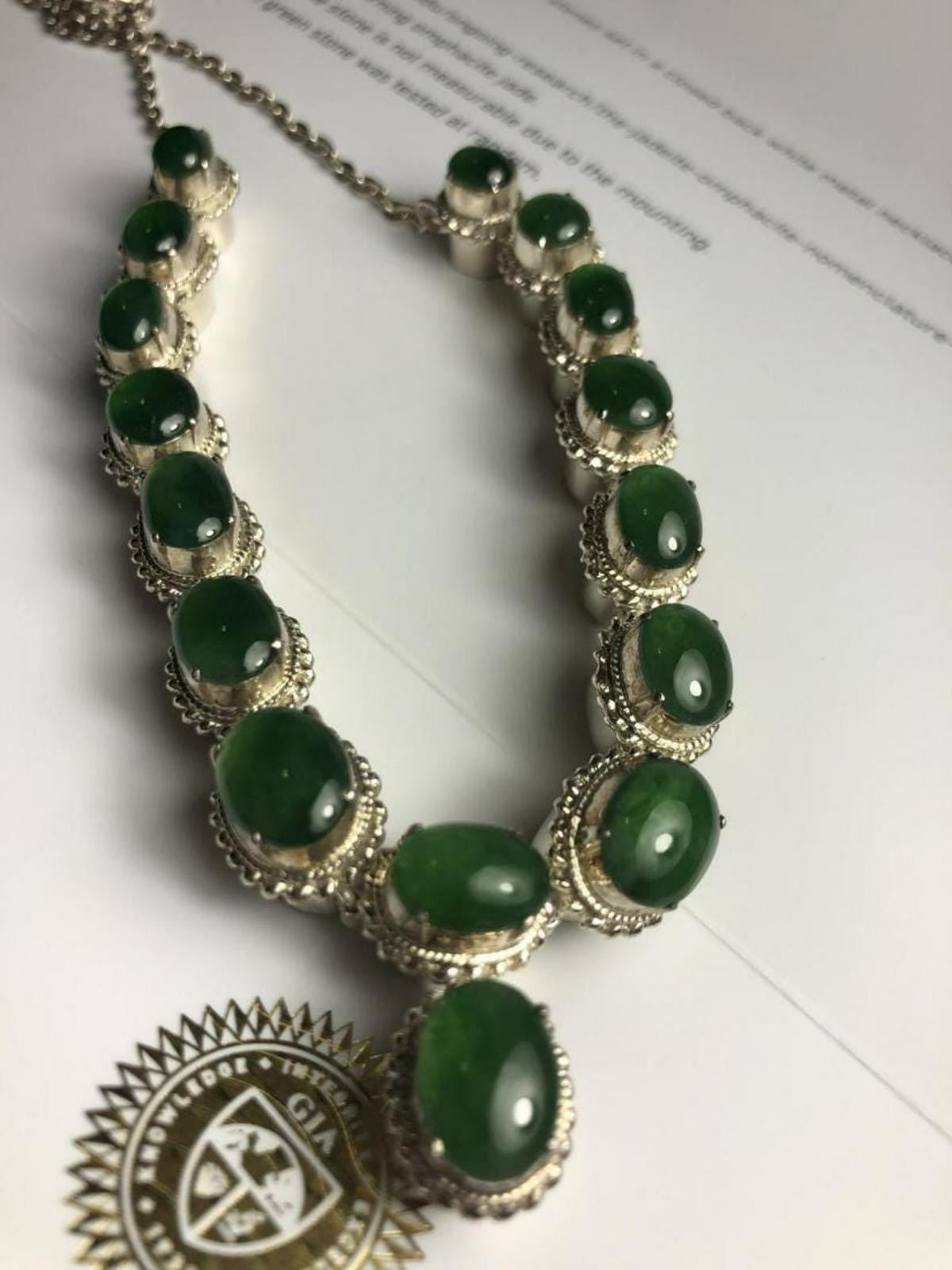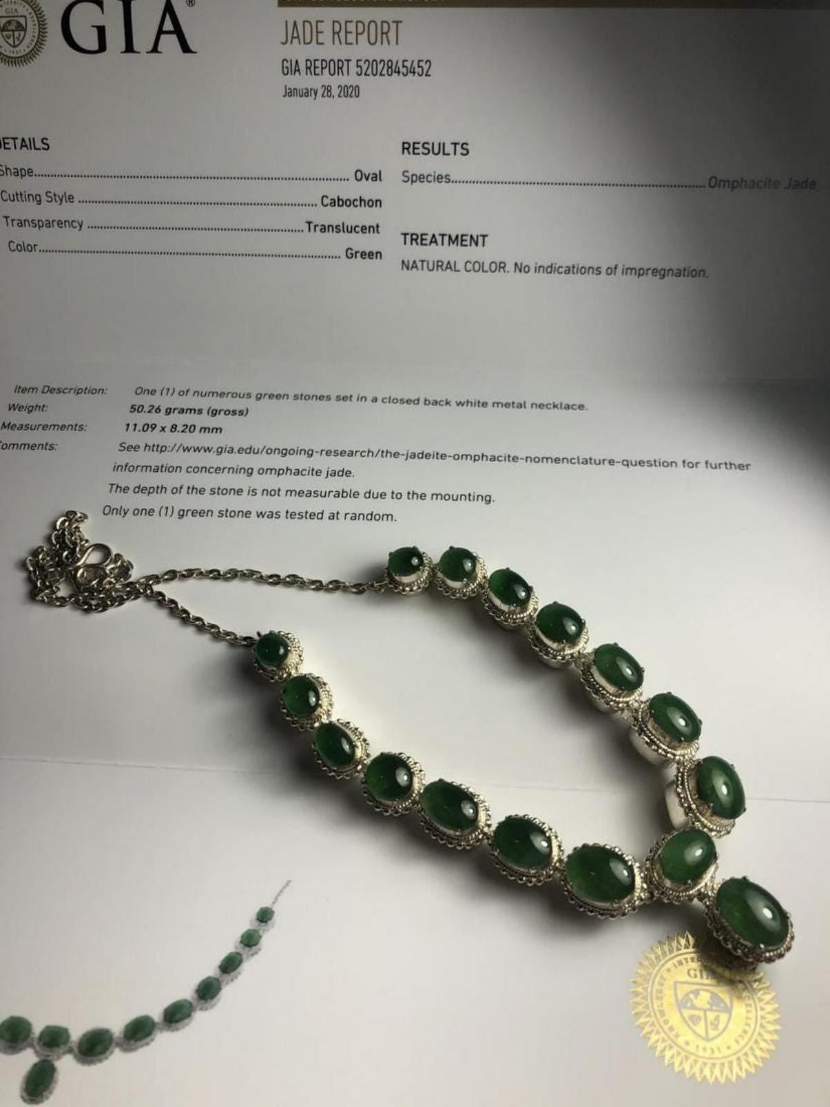 Natural Burma Jade/Jadite 50.26 grams (Total Necklace weight)....Type A Necklace.......sterling silver with 14k white Gold overlay.........Untreated Burma jade Necklace....completely untreated Jade ....Origin - Burma...GIA and AGL Certified