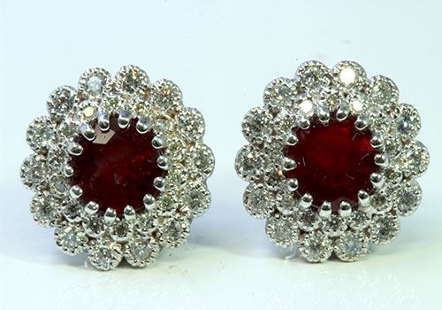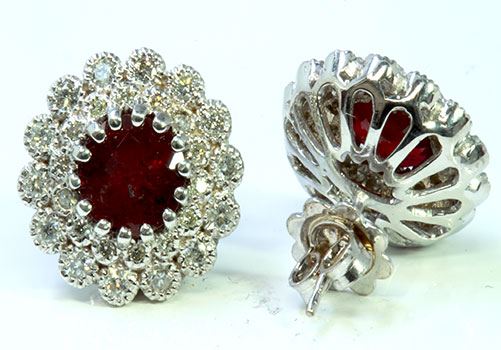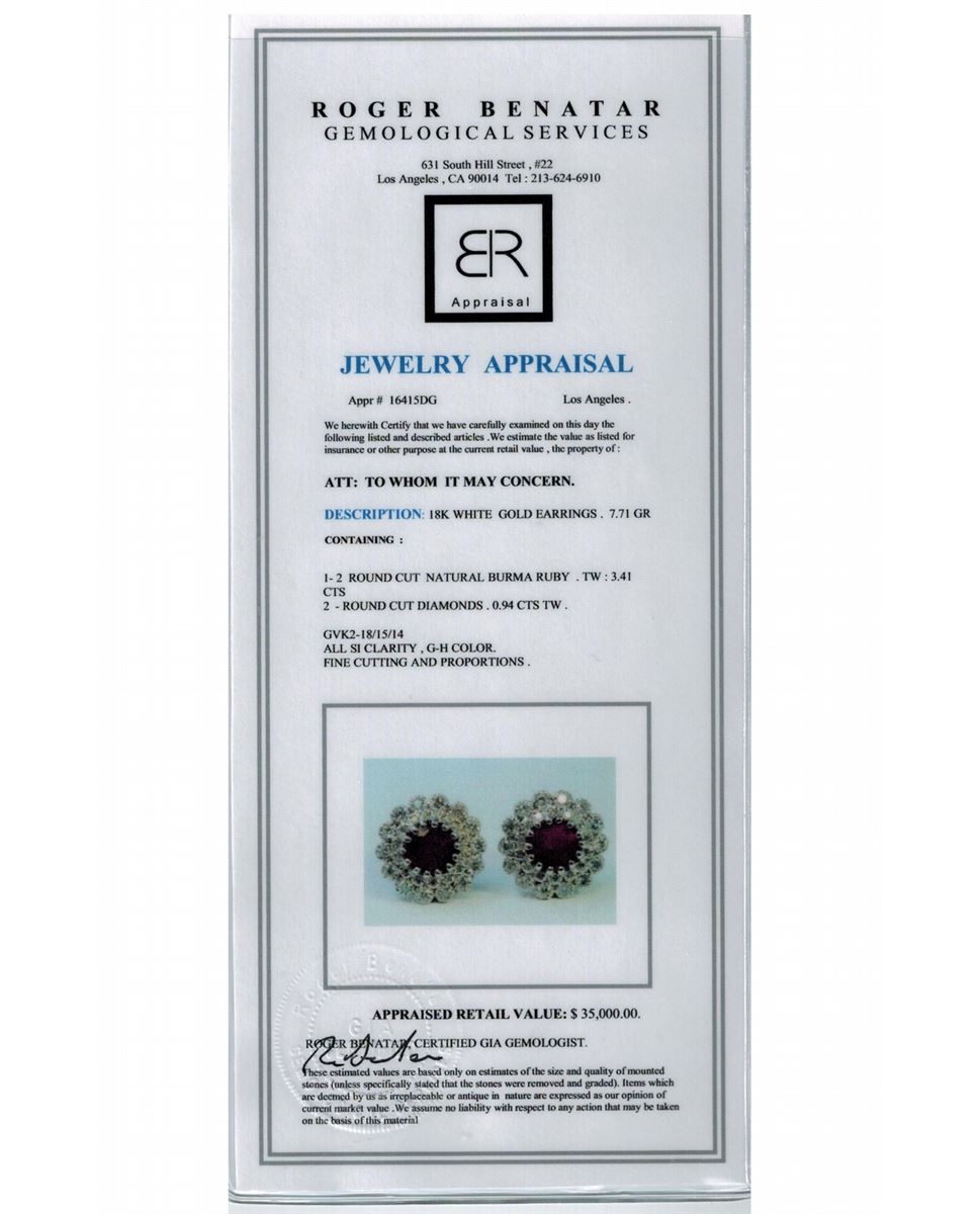 Natural Burma Ruby 3.41 ct & Diamond 0.84 ct Earring 18Kt White Gold 7.71 gr