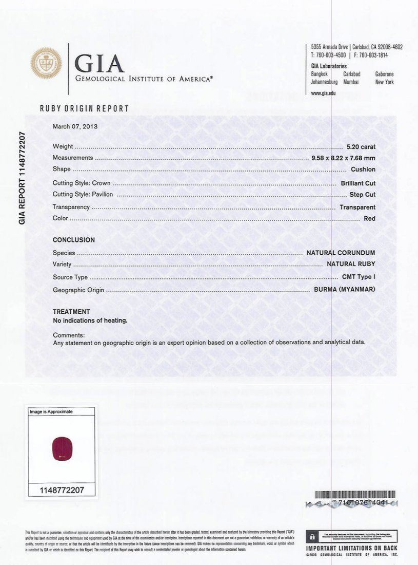 Natural Burma Ruby 5.19 carats - GIA certified, size - 9.58 x 8.22 x 7.68 mm; no treatment in any way......100% natural earth mined;