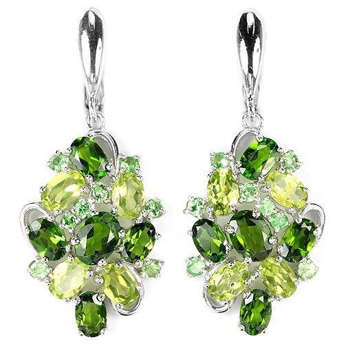 Natural GREEN CHROME DIOPSIDE PERIDOT TSAVORITE Garnet 925 SILVER EARRING14K WHITE GOLD COATING; STONE SHAPE OVAL ROUND PORTUGUESE CUT STONE DIMENSION 7 X 5 MM. , 6 X 4 MM. , 2.5 MM. , 2 MM. ITEM WEIGHT 9.6 GRAM COLOR GREEN CLARITY IF TO VVS LUSTER ENCHANTING TREATMENT NATURAL UNHEATED ORIGIN OF STONE RUSSIA, ASIA AFRICA HARDNESS 5 - 7.5; FACE OF EARRING 42 X 19 MM.