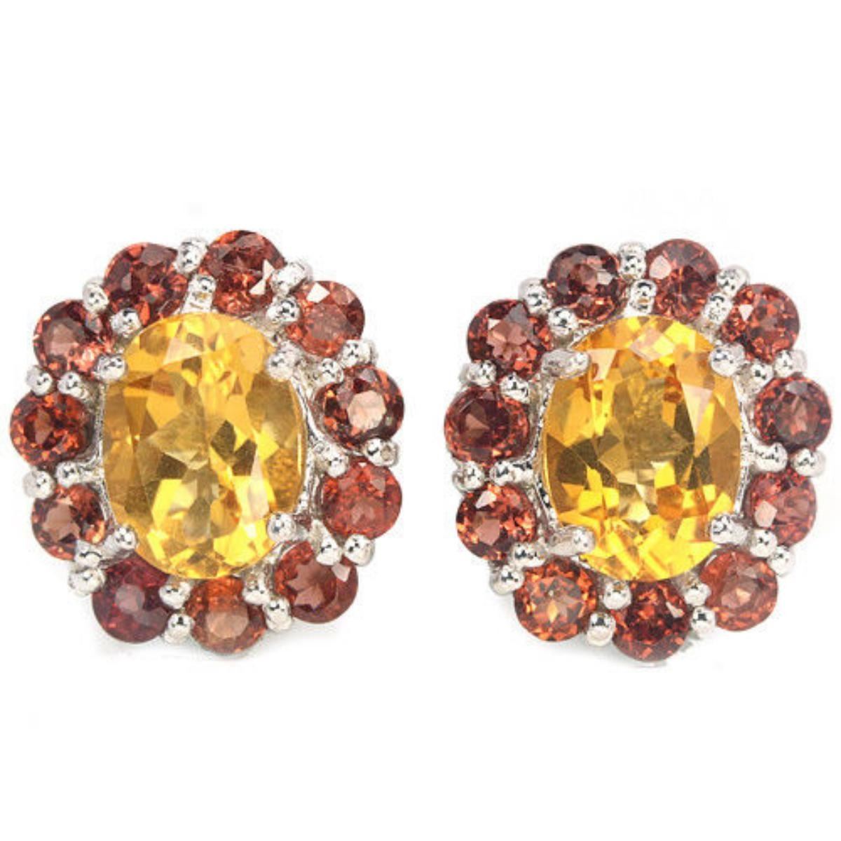 REAL ORANGISH YELLOW CITRINE GARNET 925 SILVER EARRING 14K WHITE GOLD COATING;STONE SHAPE OVAL ROUND PORTUGUESE CUT STONE DIMENSION 8 X 6 MM. 2.5 MM. ITEM WEIGHT 3.98 GRAM COLOR AAA ORANGISH YELLOW DARK ORANGE RED CLARITY IF - VVS LUSTER DAZZLING TREATMENT UNEHATED ORIGIN OF STONE BRAZIL CAMBODIA HARDNESS 7.0 - 7.5 FACE OF EARRING 13 X 12 MM.