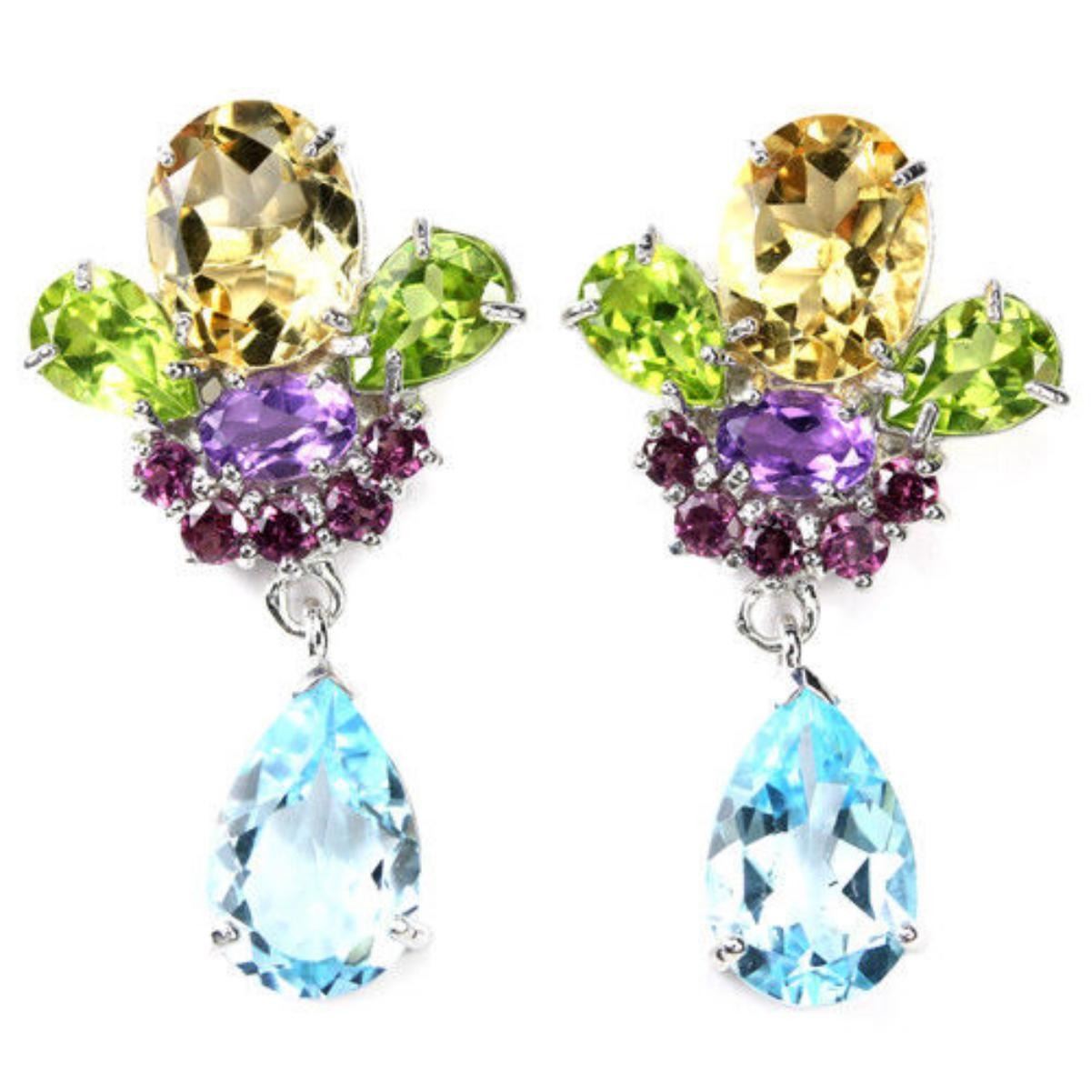 REAL CITRINE TOPAZ AMETHYST RHODOLITE 925 SILVER EARRING 14K WHITE GOLD COATING; STONE SHAPEMIXED SHAPESTONE DIMENSION12 X 8 MM. , 10 X 8 MM. , 6 X 4 MM. , 5 X 4 MM. & 2.7 MM.ITEM WEIGHT9.2 GRAMCOLORMULTI COLORCLARITYIF, VVS - SILUSTERALLURINGTREATMENTNATURAL UNHEATED & IRRADIATIONORIGIN OF STONEAFRICA, ASIA & BRAZILHARDNESS7.5OTHERFACE OF EARRING 34 X 19 MM.