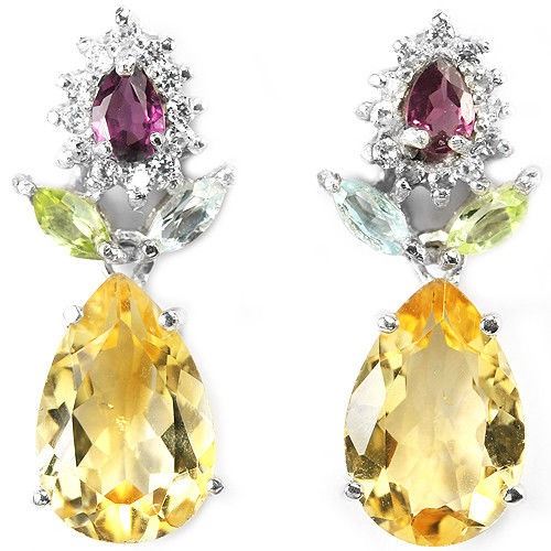 CITRINE TOPAZ PERIDOT rhodolite GARNET CZ 925 SILVER EARRING 14K WHITE GOLD COATING; STONE SHAPE PEAR MARQUISE STONE DIMENSION 12 X 8 MM. , 5 X 3 MM. , 5 X 2.5 MM. ITEM WEIGHT 4.2 GRAM COLOR MULTI COLOR CLARITY IF VVS TO VS LUSTER DELIGHTFUL TREATMENT NATURAL UNHEATED IRRADIATION ORIGIN OF STONE BRAZIL, AFRICA, ASIA CAMBODIA HARDNESS 6.5 - 8; FACE OF EARRING 25 X 10 MM. WHITE CUBIC ZIRCONIA 1.3 MM.
