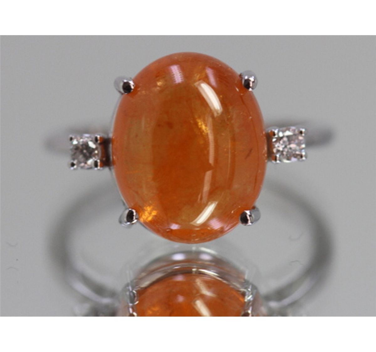 14kt White Gold 2.70 Approx grams, 9.24ct Mandarin Garnet Oval Cabochon, .09cttw Round Diamond, Great Solitaire Ring for a Gift , Appraisal Estinate $5000.00