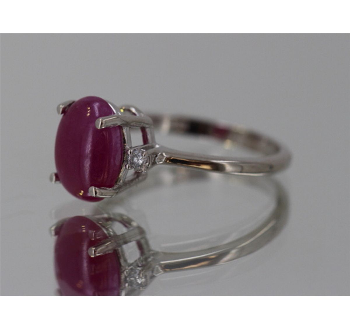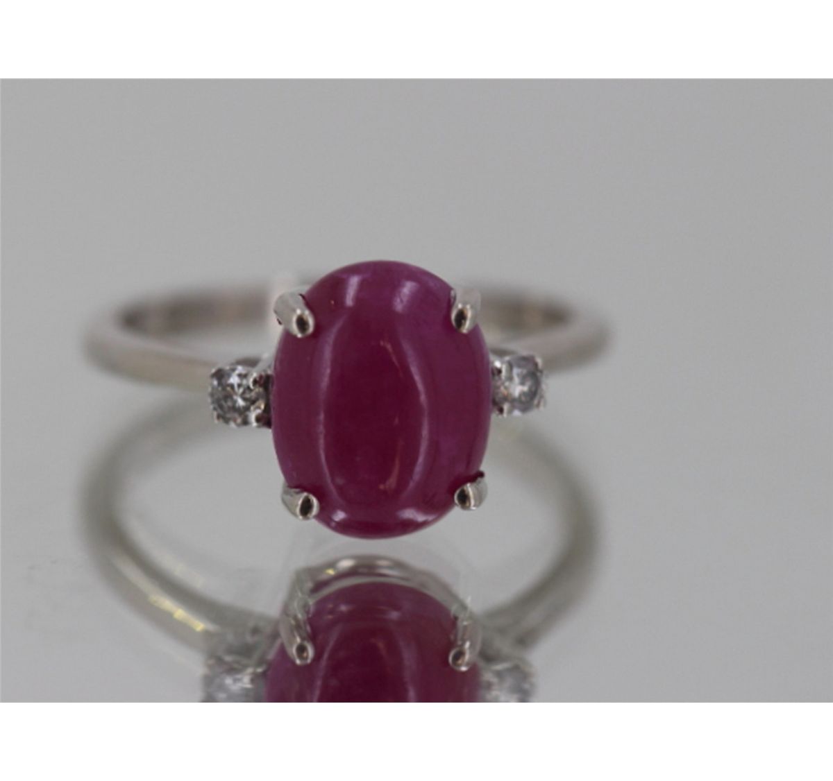 14kt White Gold 2.29 Approx grams, 4.11ct Cabochon Ruby Oval (no glass no lead), .08cttw Round Diamond, Appraisal Estimate $5000.00, Great Solitaire Style, Great for a Gift