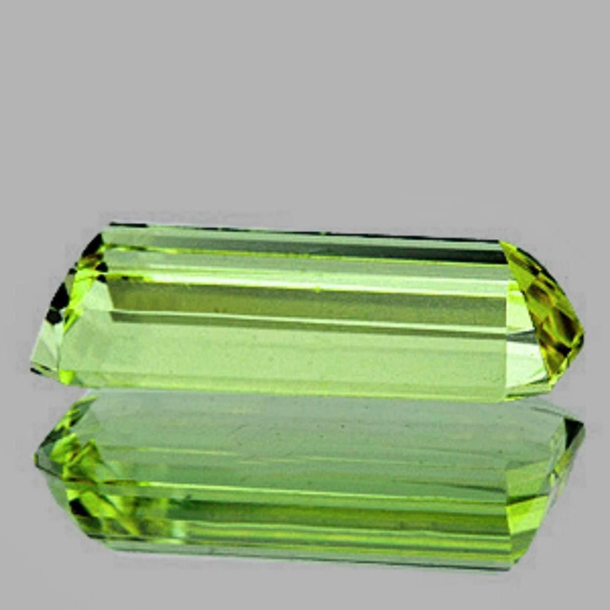 Natural Apatite.... WEIGHT : 7.92 cts..... SHAPE : Rectangle ; SIZE ( L x W x D ) : 22.76 x 8.42 x 4.30 mm; QUANTITY : 1 pieces; COLOR : Canary Green; CLARITY : VVS; ORIGIN : Madagascar; HARDNESS : 5; LUSTER : Excellent!!! TREATMENT : 100% Natural Unheated
