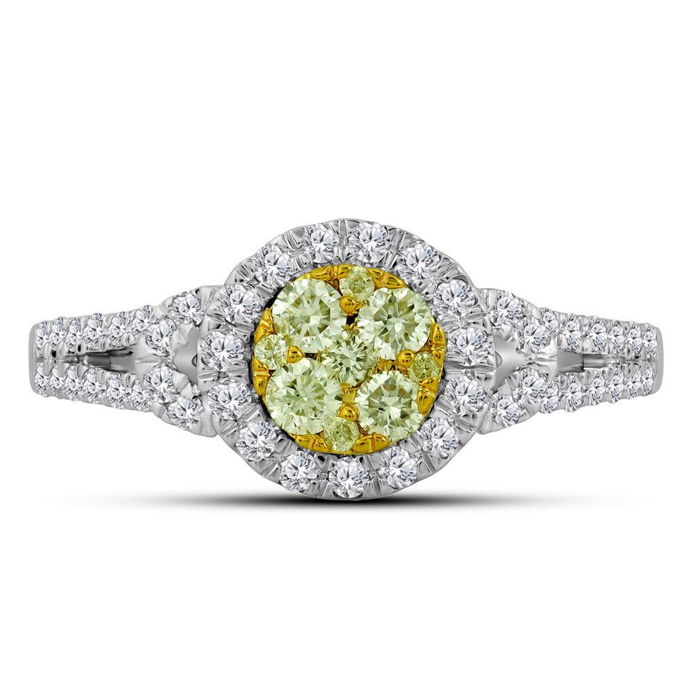 14kt White Gold Womens Round Natural Canary Yellow Diamond Cluster Ring 5/8 Cttw
