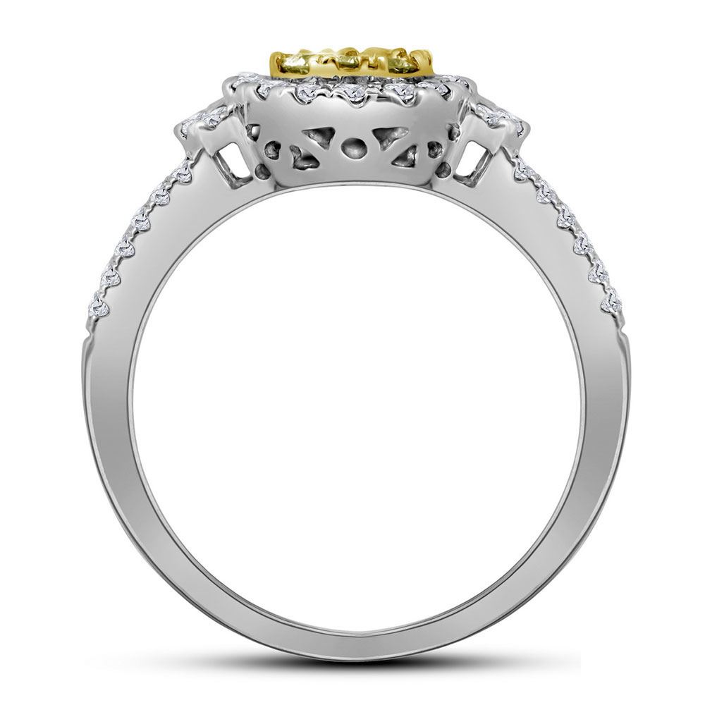 14kt White Gold Womens Round Natural Canary Yellow Diamond Cluster Ring 5/8 Cttw