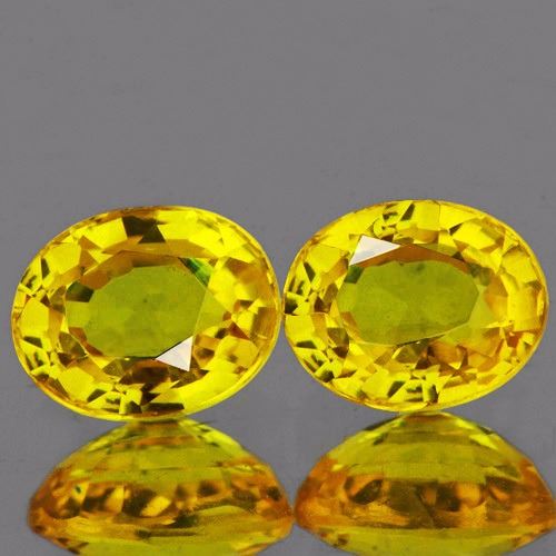 Natural Yellow Sapphire............ WEIGHT : 1.05 cts; SHAPE : Oval; SIZE ( L x W x D ) : 5.50 x 4.50 mm; QUANTITY : 2 pieces ( Perfectly Matched Pair) COLOR : Top Canary Yellow; CLARITY : IF-VVS1; ORIGIN : Ceylon; HARDNESS : 9; LUSTER : Excellent!!!