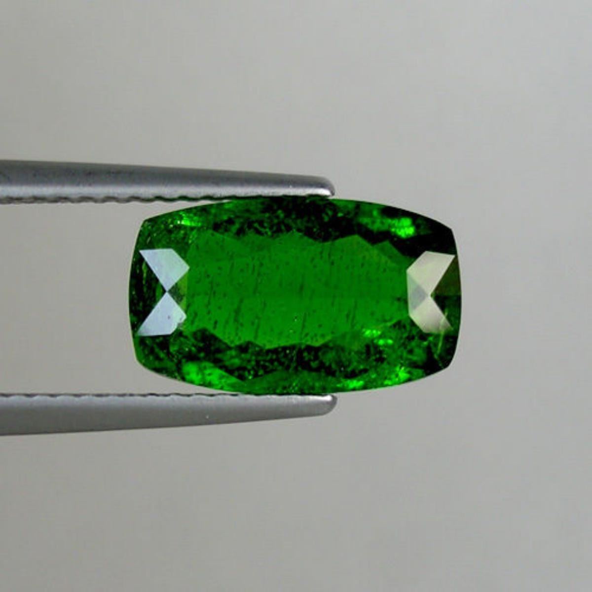 Natural Chrome Diopside..............Dimension:-12.05 x 7.15 Depth 3.86 MM;Color :-Green As Picture;Weight:-2.94 Carats.;Shape/Cut:-Long Cushion;Origin:-Russia