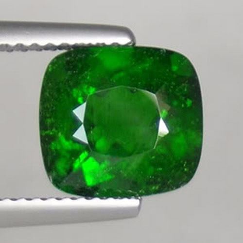 Natural Chrome DiopsideDimension:-9.50 x 9.00 Depth 5.90 MMColor :-Massive Green Dull Luster As PictureWeight:-3.80 Carats.Clarity:-Glow S1 1-3 Inclusion as PictureShape/Cut:-Cushion Origin:-Russia