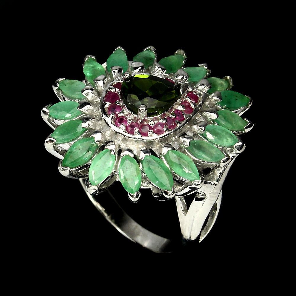 925 STERLING SILVER;PLATE14K WHITE GOLD;RING SIZE8(resizeable)MAIN STONECHROME DIOPSIDE;OTHER GEMSEMERALD,RUBY;TOTAL WEIGHT47.71 CT (TOTAL WEIGHT OF SILVER + STONE)DIMENSION* STONE 1.5 TO 7.0 X 5.0 MM. * FACE RING 25.0 X 22.0 MM.;MAIN STONE SHAPEPEAR CUT;MAIN STONE COLORTOP RICH GREEN;CLARITY/GRADEIF;LUSTERELEGANTTREATMENTUNHEATED;ORIGINRUSSIA;HARDNESS5.0 - 9.0;