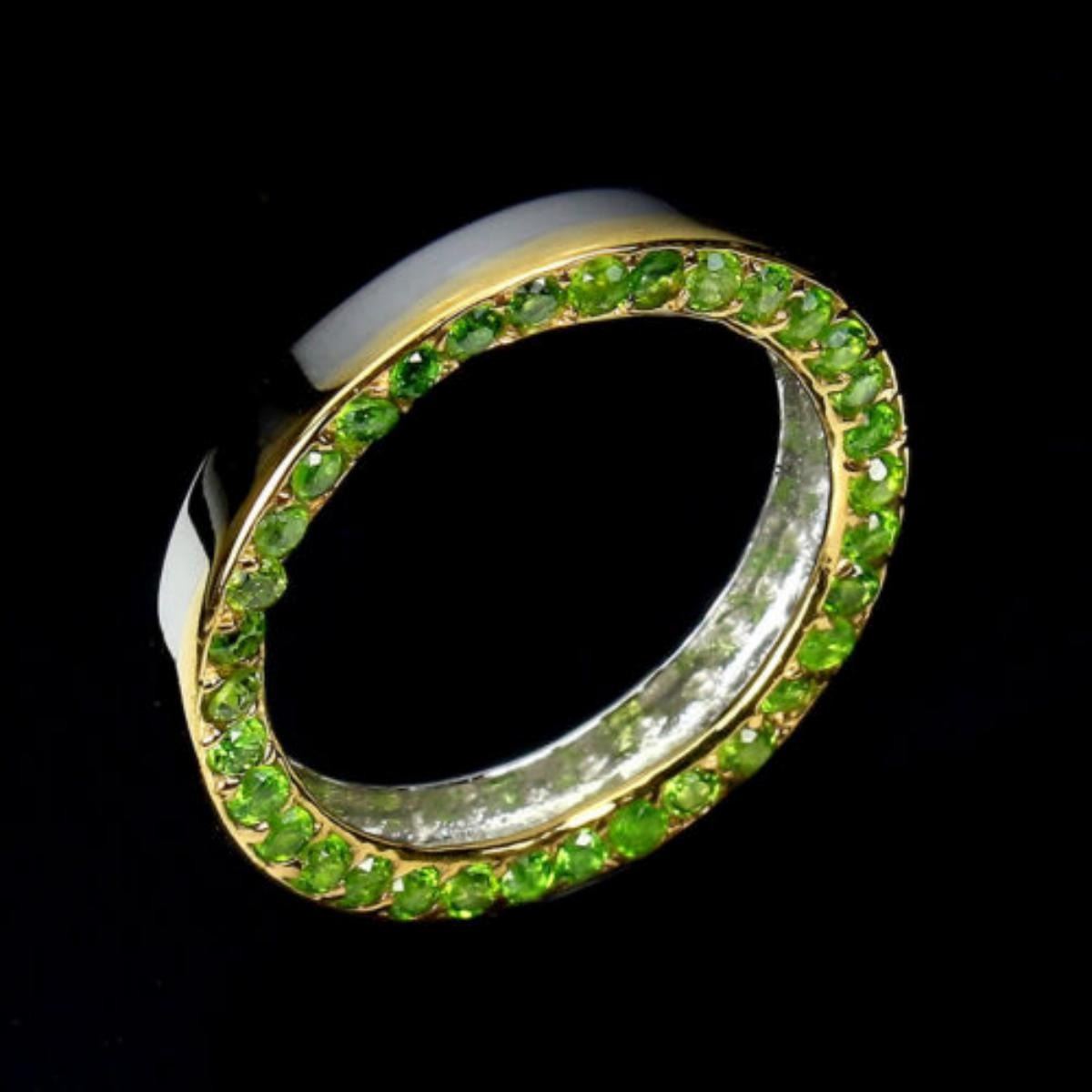 925 STERLING SILVER;PLATE-2-TONE WHITE & YELLOW 14K GOLD;RING SIZE-7;MAIN STONE-CHROME DIOPSIDE;TOTAL WEIGHT-2.82 GRAM (TOTAL WEIGHT OF SILVER + STONE);DIMENSION-* STONE 1.5 MM.* FACE EARRINGS 23.0 X 4.0 MM.;MAIN STONE SHAPE-ROUND;MAIN STONE COLOR-GREEN;CLARITY/GRADE-IF TO VVS;TREATMENT-UNHEATED;ORIGIN-RUSSIA;HARDNESS-5.0 - 5.5;