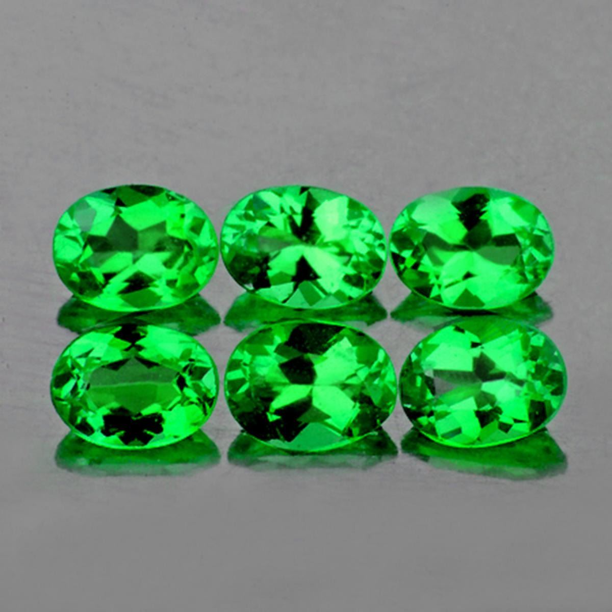 Natural Tsavorite Garnet;SIZE ( L x W x D ) : 4 x 3 mm;COLOR : Intense Chrome Green ; SHAPE : Oval;QUANTITY : 6 pieces;LUSTER : Excellent ;CLARITY : VVS;HARDNESS : 7;ORIGIN : Tanzania; TREATMENT : 100% Natural Unheated;